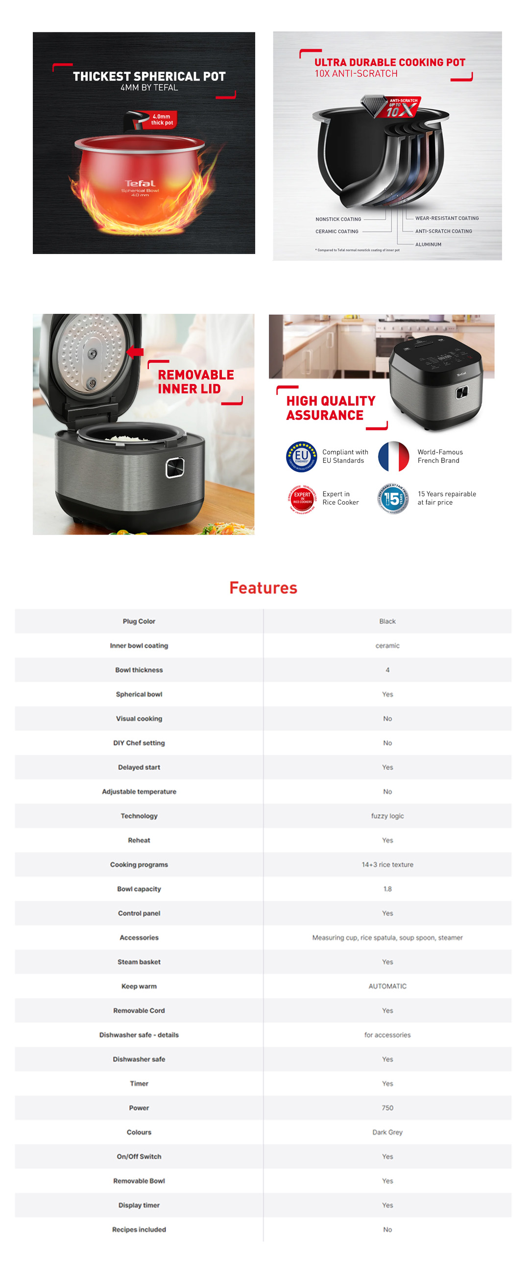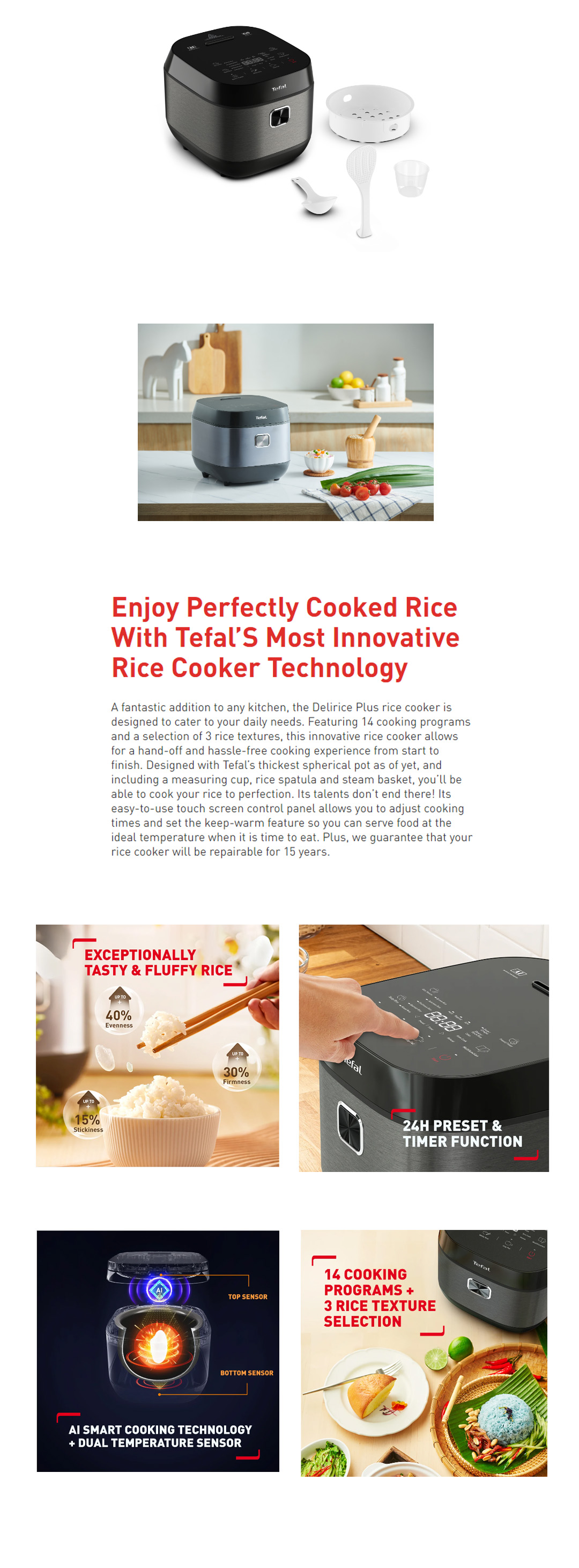 Tefal 1.8L Delirice Plus Fuzzy Logic Rice Cooker RK776B | 14 Cooking Programs | 12-hour Keep Warm Feature | Touch Screen Control Panel | Cooker with 2 Year Warranty
