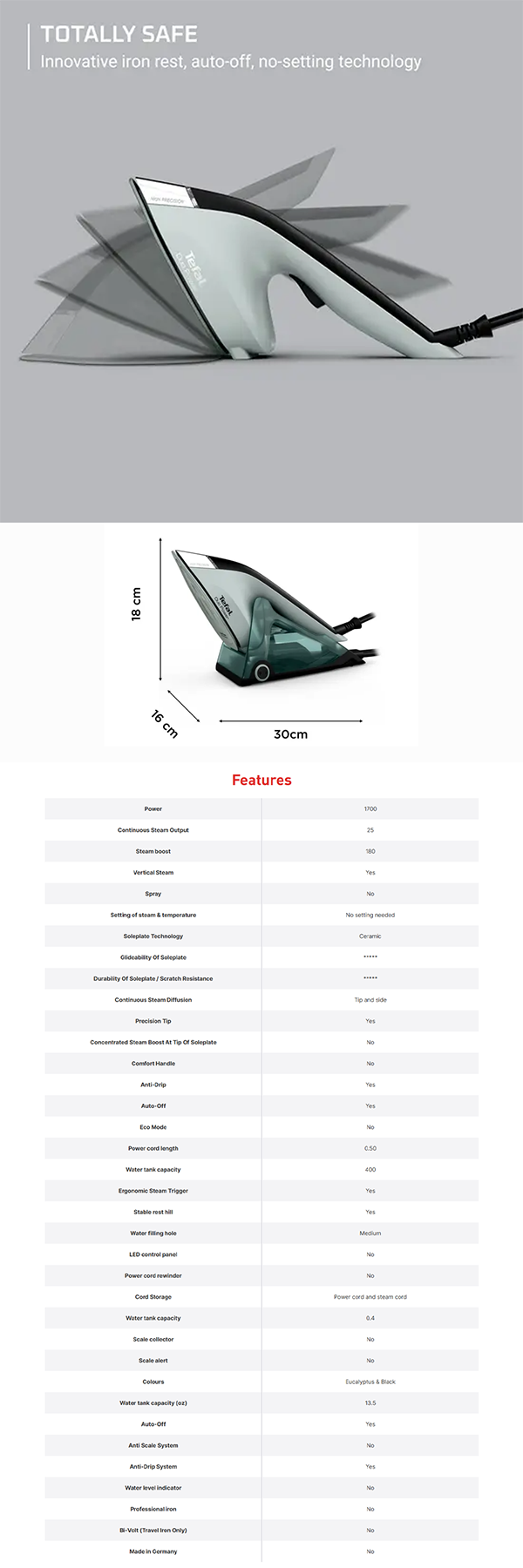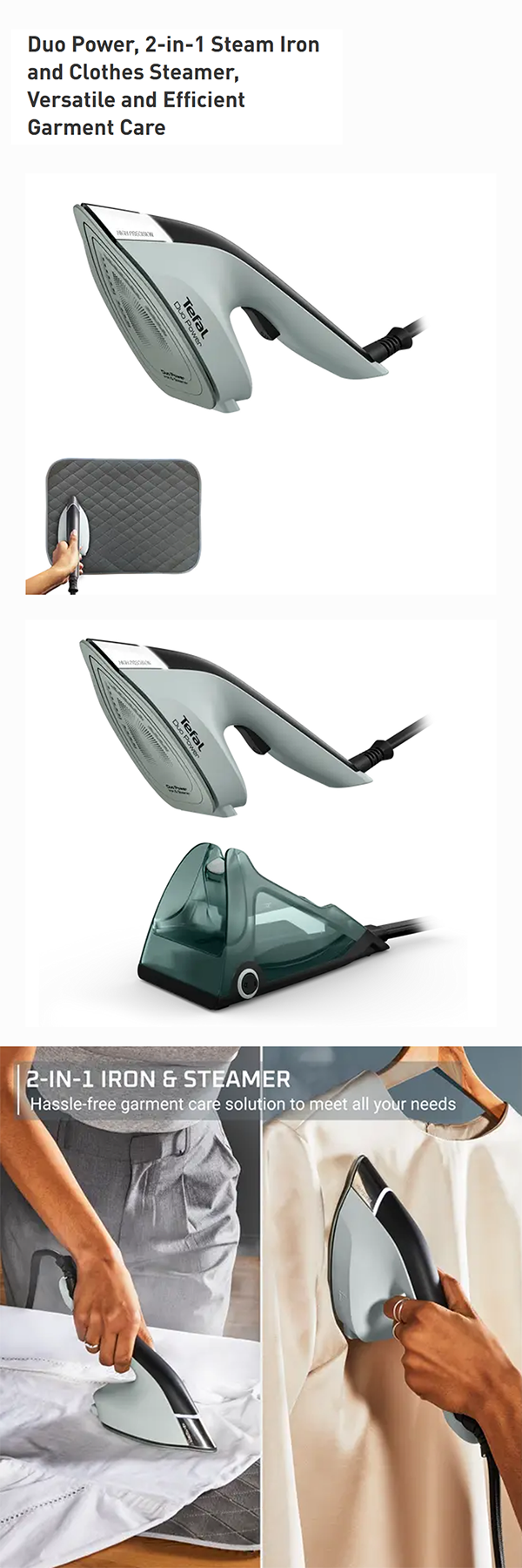 Tefal 1700W Duo Power 2-in-1 Steam Iron JF4033 | Steam output up to 25g/minute | Support vertical steam | Auto-off & anti-drip funtions | Ceramic soleplate technology