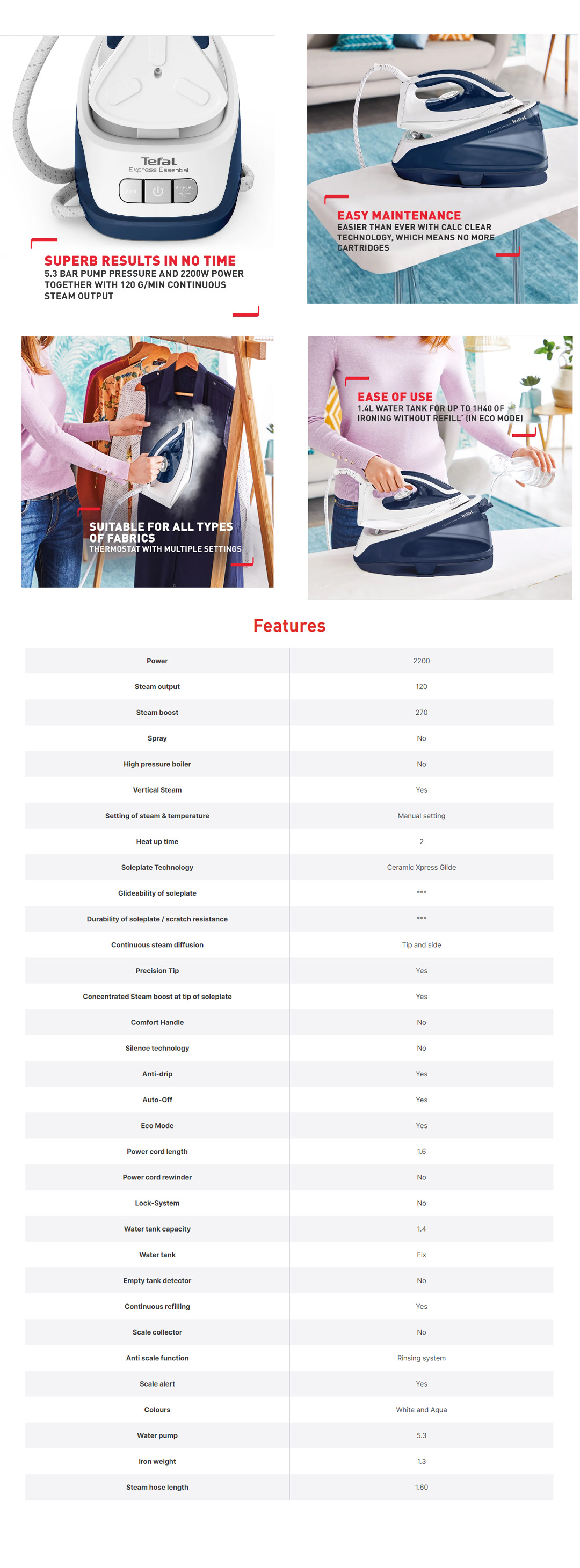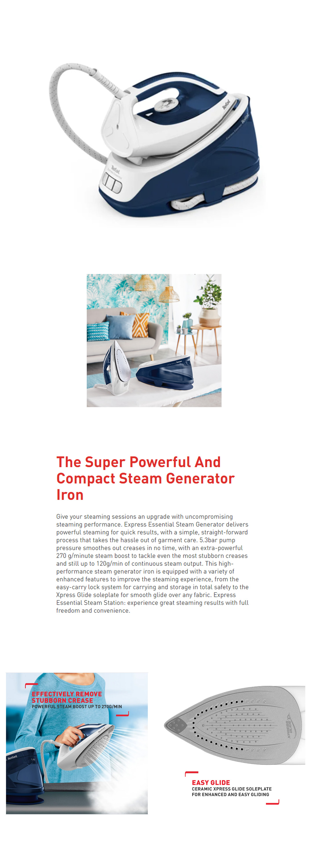 ● Vertical Steam ● Fix Water Tank ● 270W Steam Boost