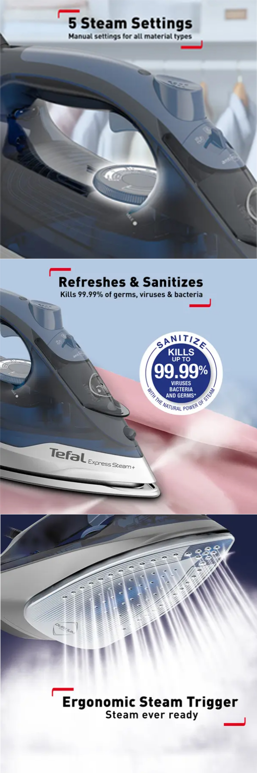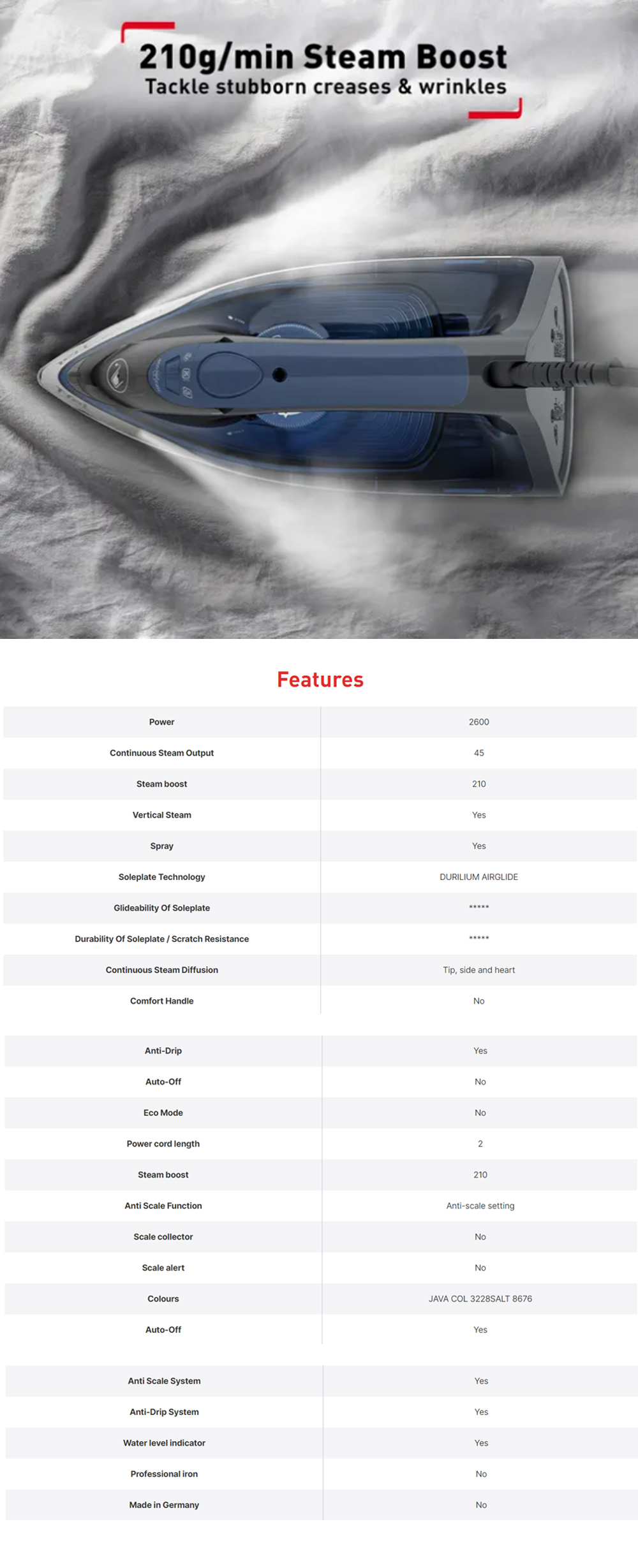 ● Up to 210 g/min steam boost for tough creases and wrinkles
