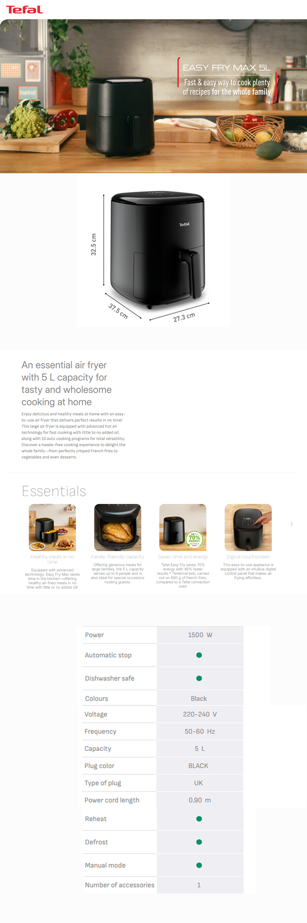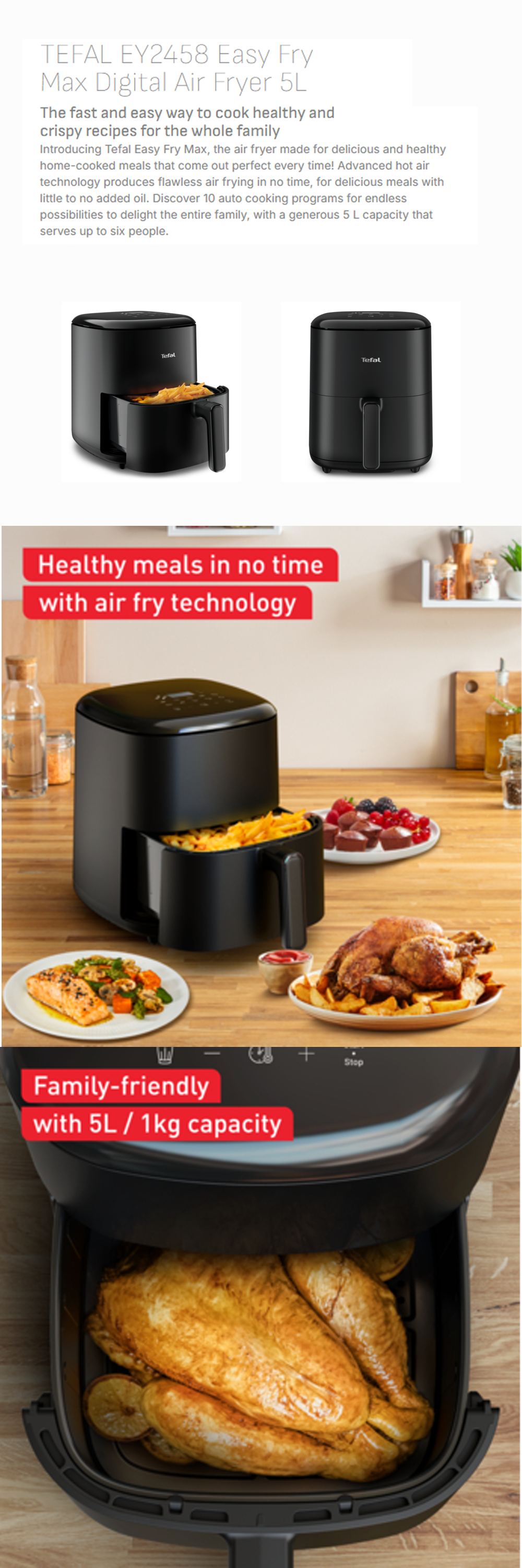 Tefal 5L Easy Fry Max Digital Air Fryer EY2458 | Digital Touchscreen | Save Time and Energy | Auto Cooking Program