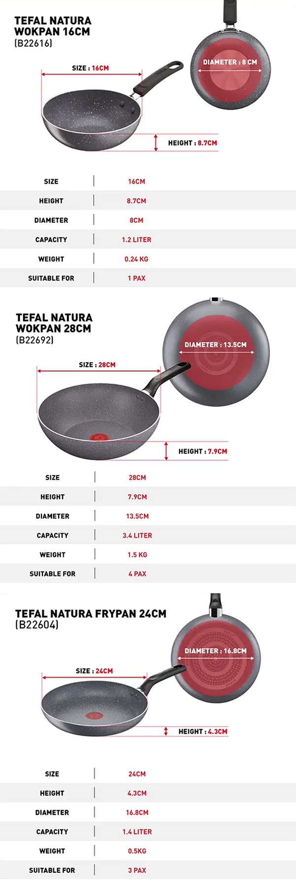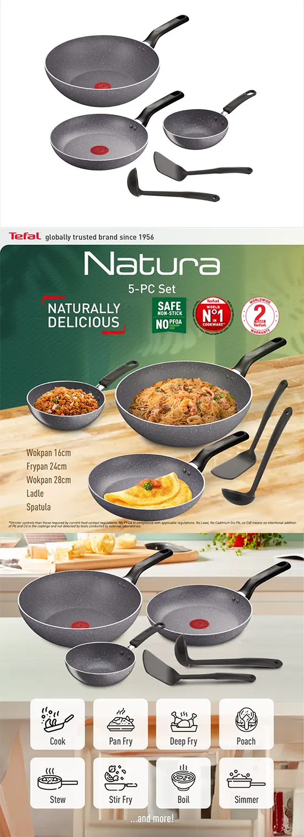 Tefal Natura 5-Piece Cookware Set B226S595 | Perfect Searing Thermo-Signal | Naturally Resistant Mineralia Coating | Safe Non-Stick