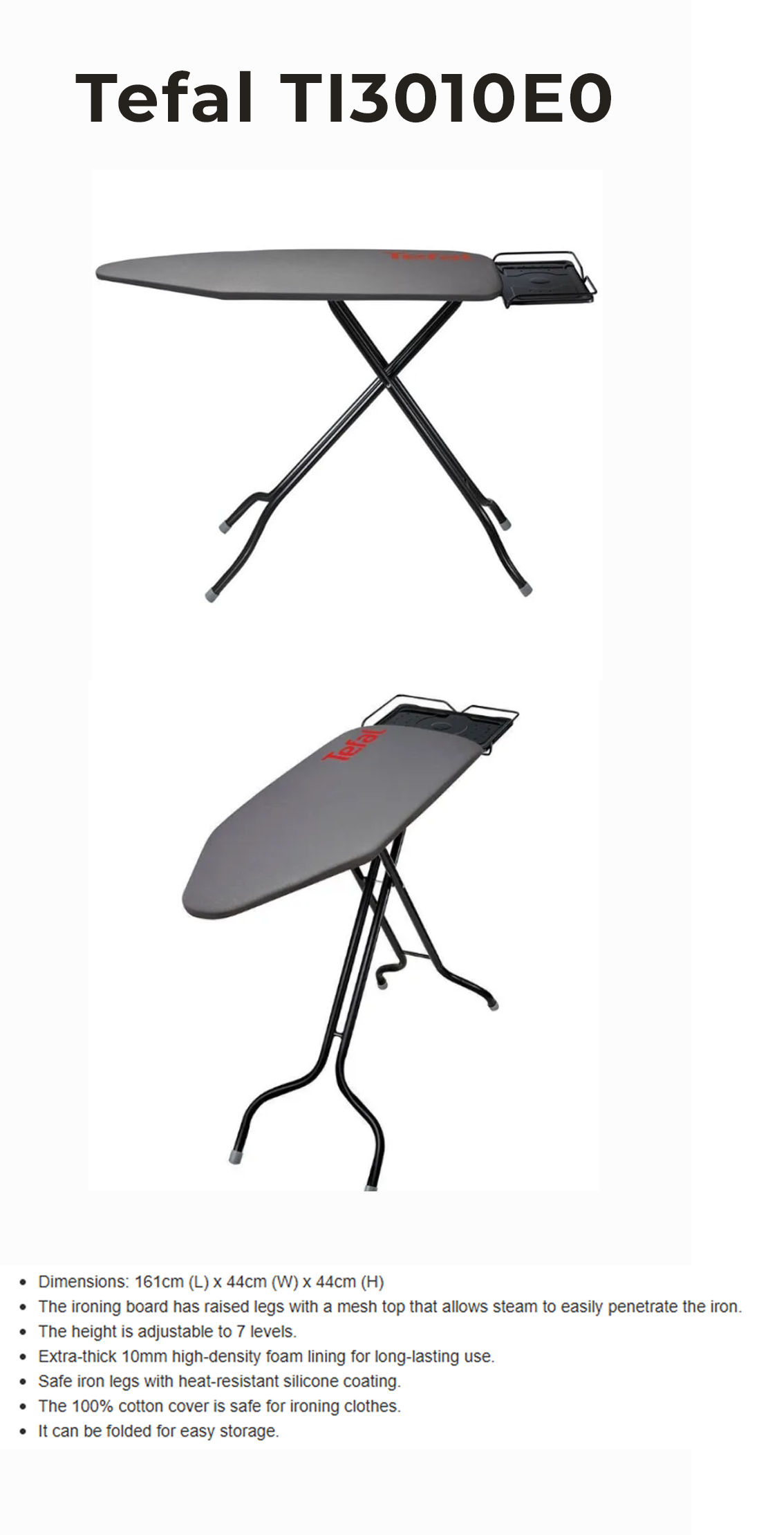 Tefal Premium Ironing Board TI3010E0 | Steam-Friendly Surface | Durable & Stable | Foldable Design