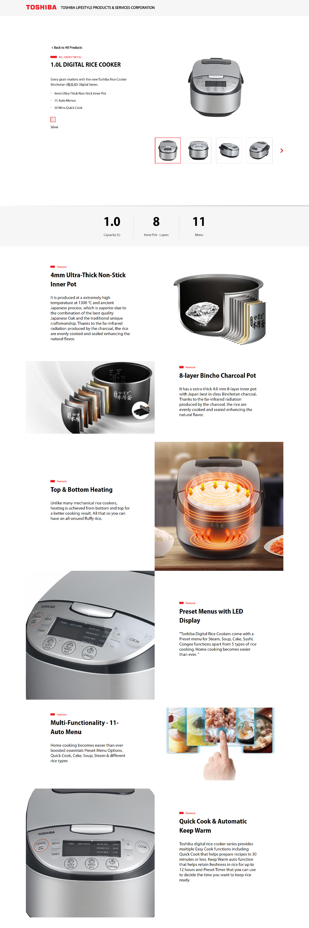 TOSHIBA 1.0L 1.8L Binchotan Digital Series Digital Rice Cooker RC-18DR1TMY(S) / RC-10DR1TMY(S)