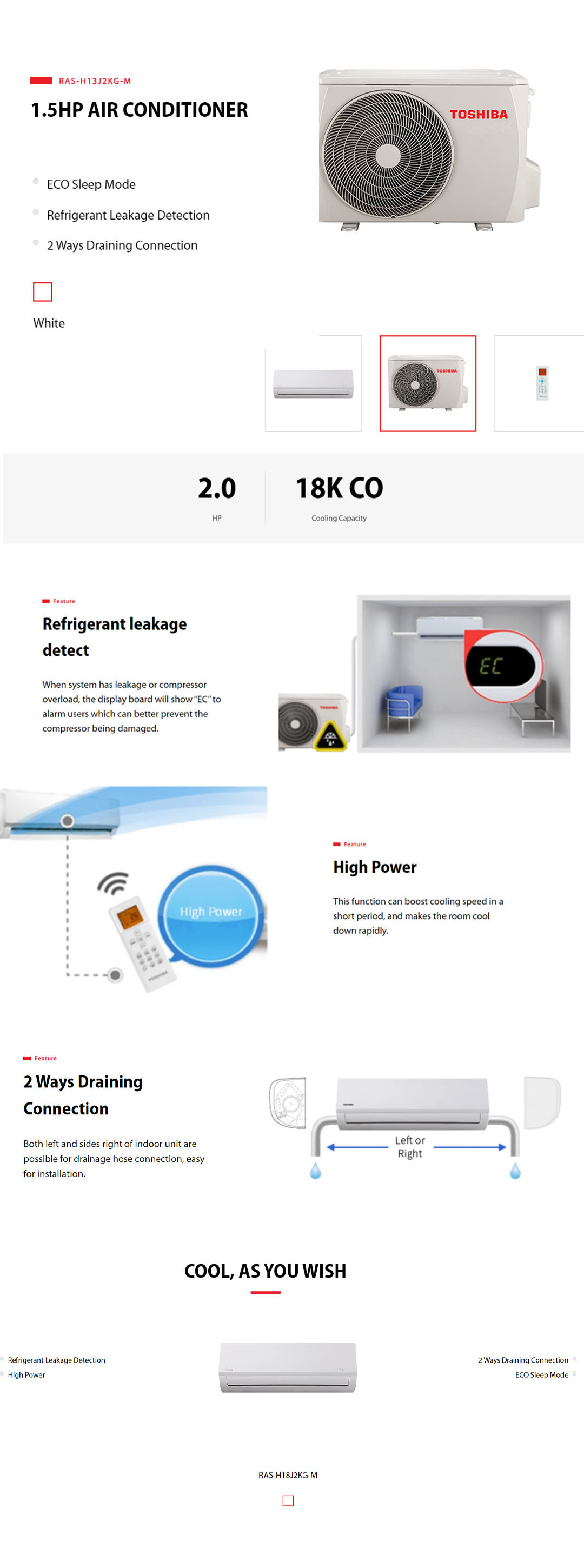 TOSHIBA 1.5HP R32 Non-Inverter Wall Mount Air Conditioner RAS-H13J2KG-M & RAS-H13J2AG-M | ECO Sleep Mode | Refrigerant Leakage Detection | 2 Ways Draining Connection | Air Conditioner with 1 Year Warranty