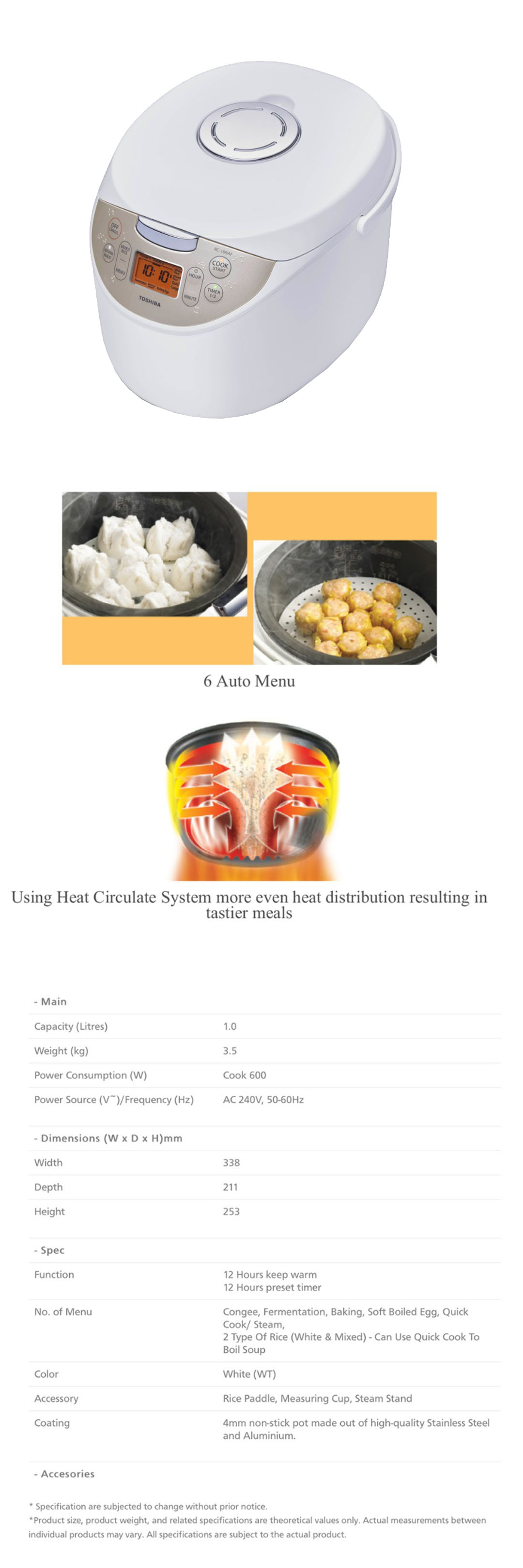 TOSHIBA 1.8L Digital Rice Cooker RC-18NAFIM | 6 Auto Menu | Heat Circulate System Used | Rice Cooker with 1 Year Warranty