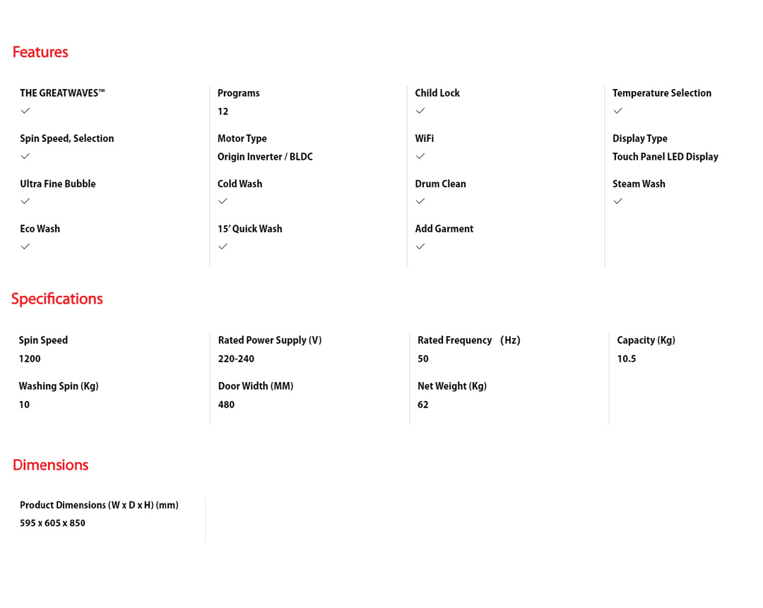 TOSHIBA 10.5KG Front Load Origin Inverter Washing Machine with Smart Control TW-BL115A2M(SS) | Steam Wash | IOT TSmartLife | Drum Clean | Washing Machine with 2 Year Warranty