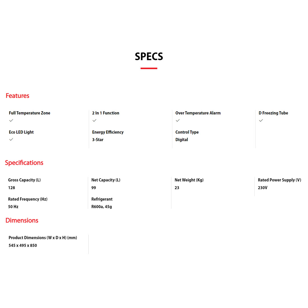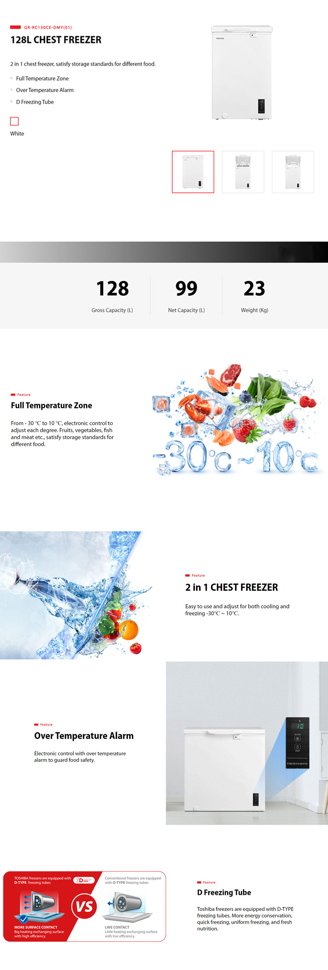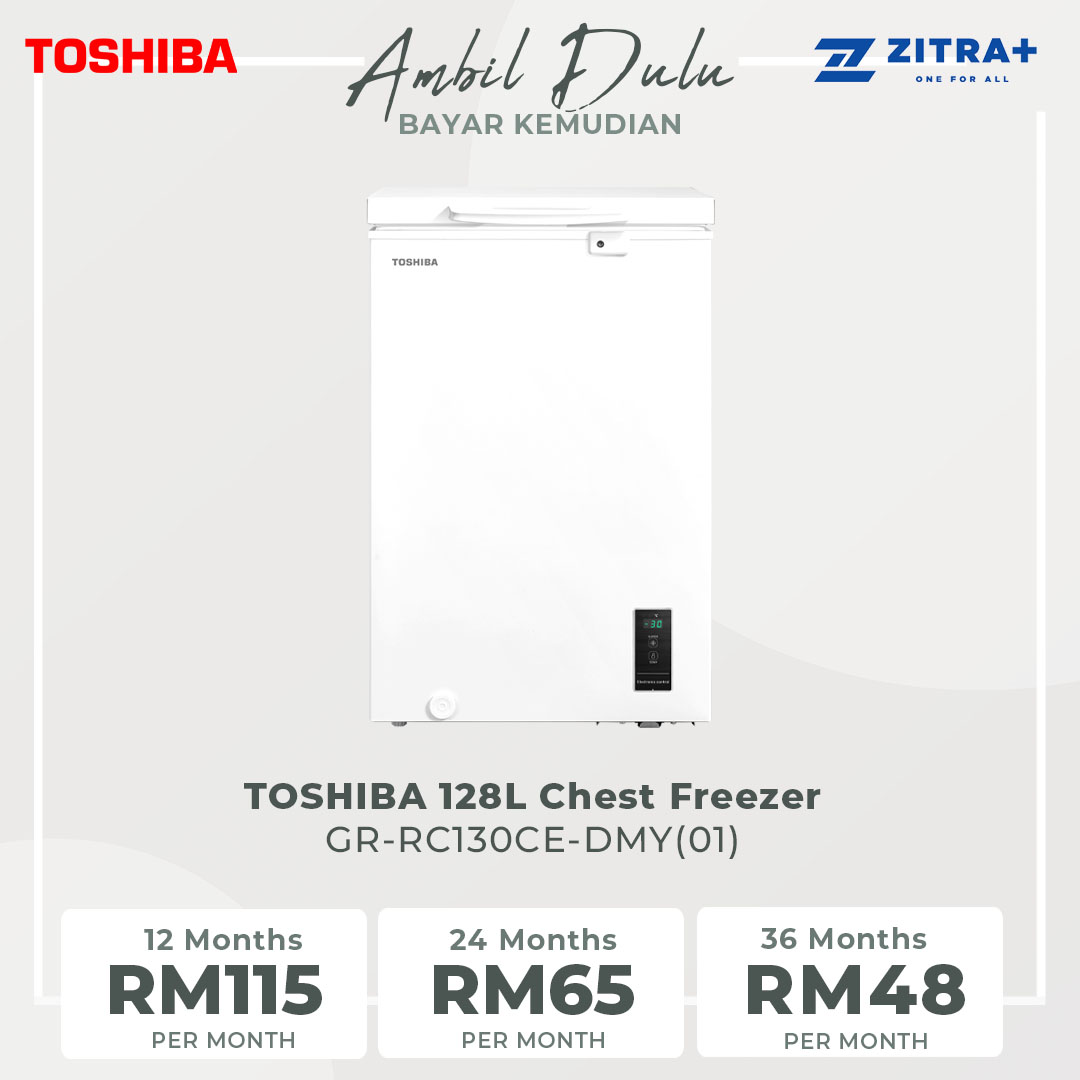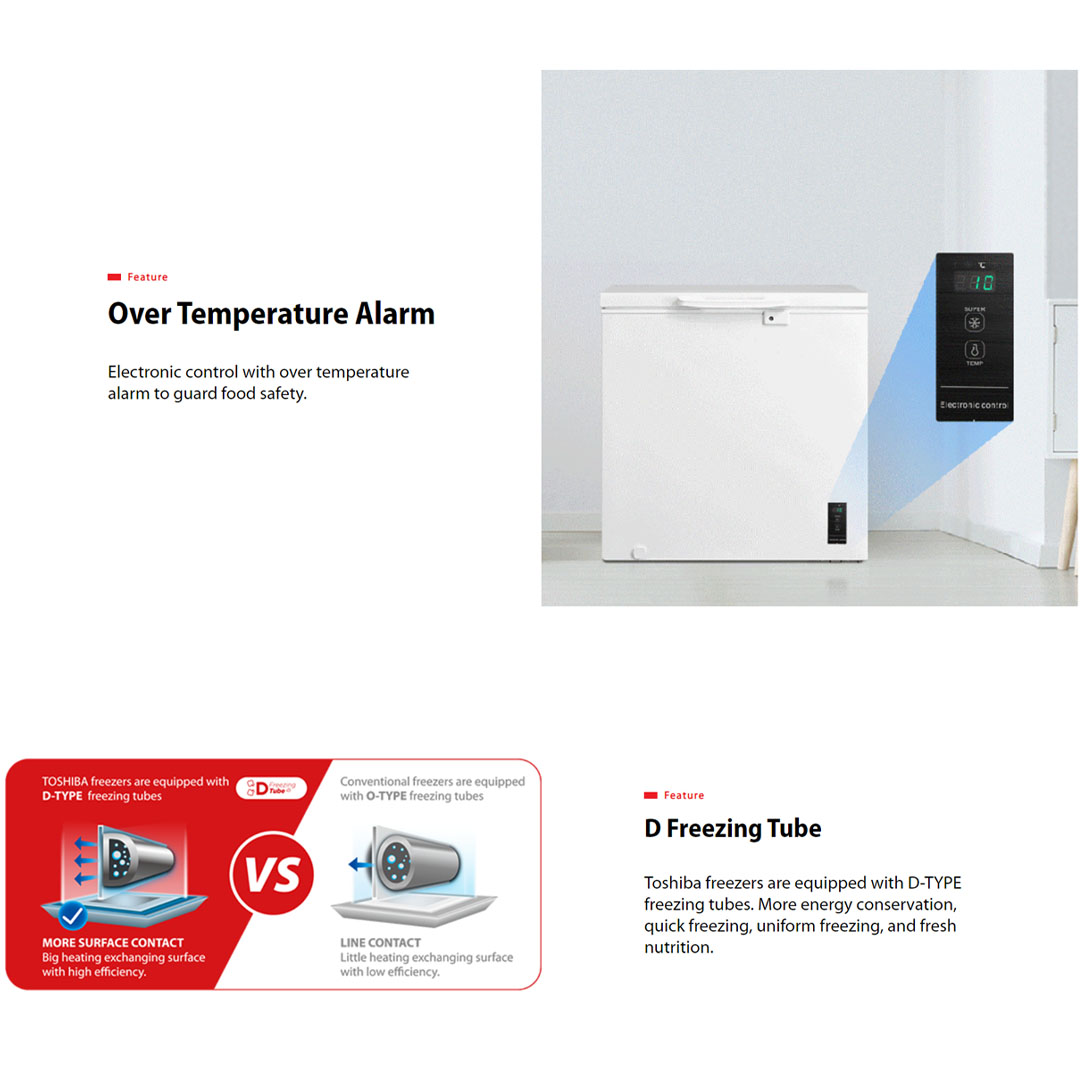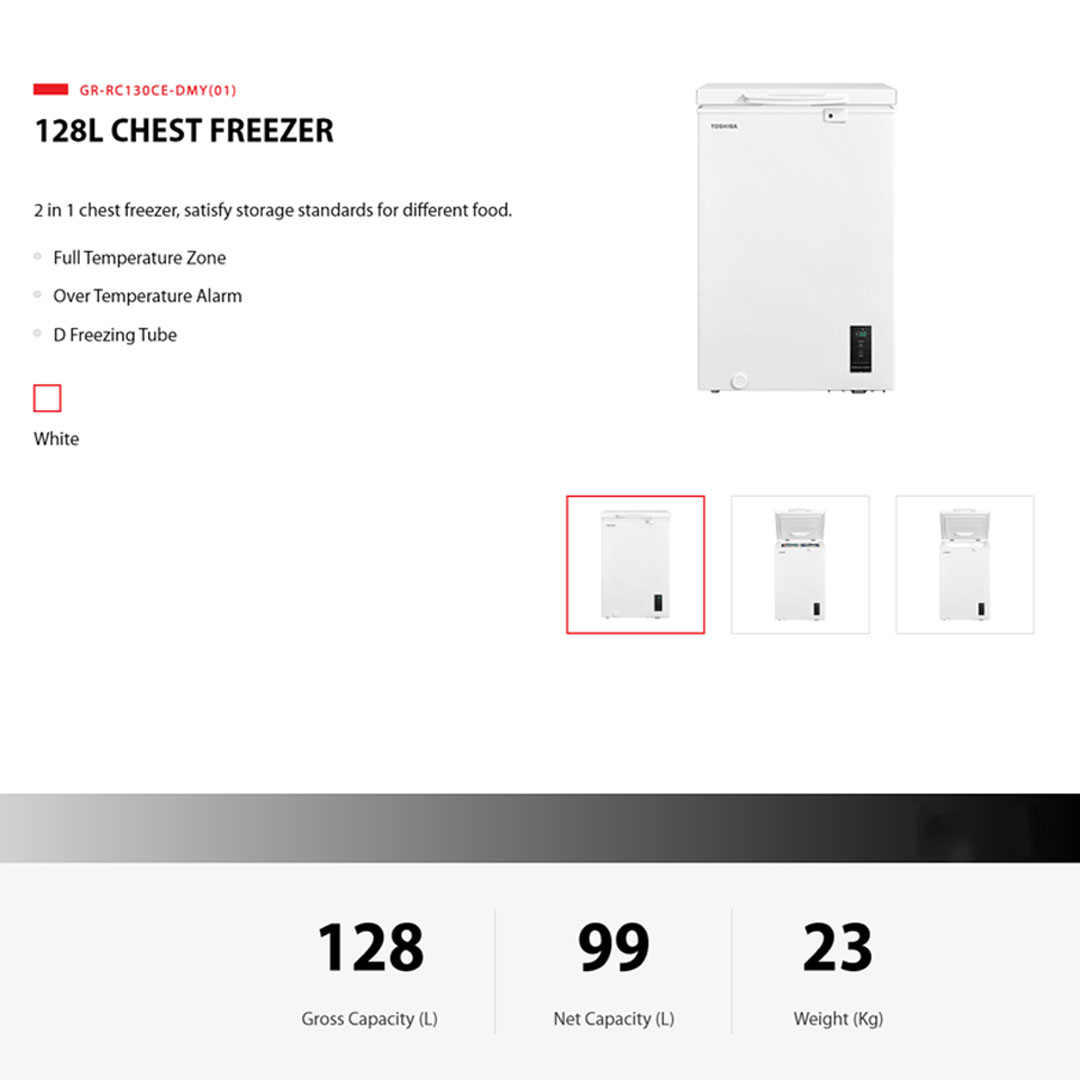 TOSHIBA 128L Chest Freezer GR-RC130CE-DMY(01) | Full Temperature Zone | 2 In 1 Function | Over Temperature Alarm | D Freezing Tube | Eco LED Light | Chest Freezer with 1 Year Warranty