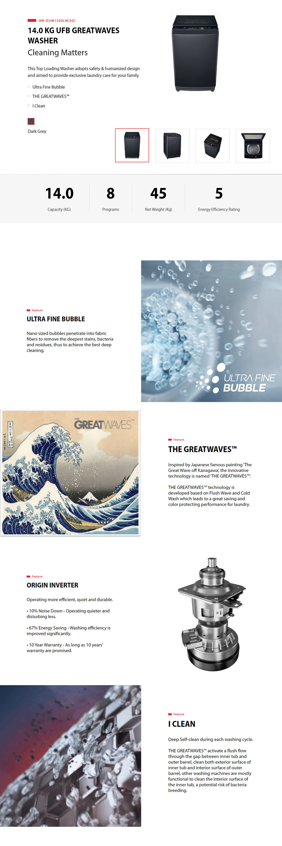 Toshiba 14KG Top Loading DD Washer AW-DUM1500LM(SG) | Ultra Fine Bubble | THE GREATWAVES | I Clean | Easy Kit | Multi Programs | No Angular Design | Soft Close Lid | DD Washer with 2 Year Warranty
