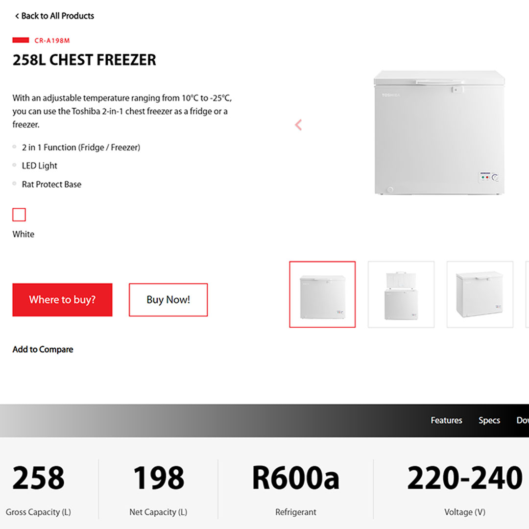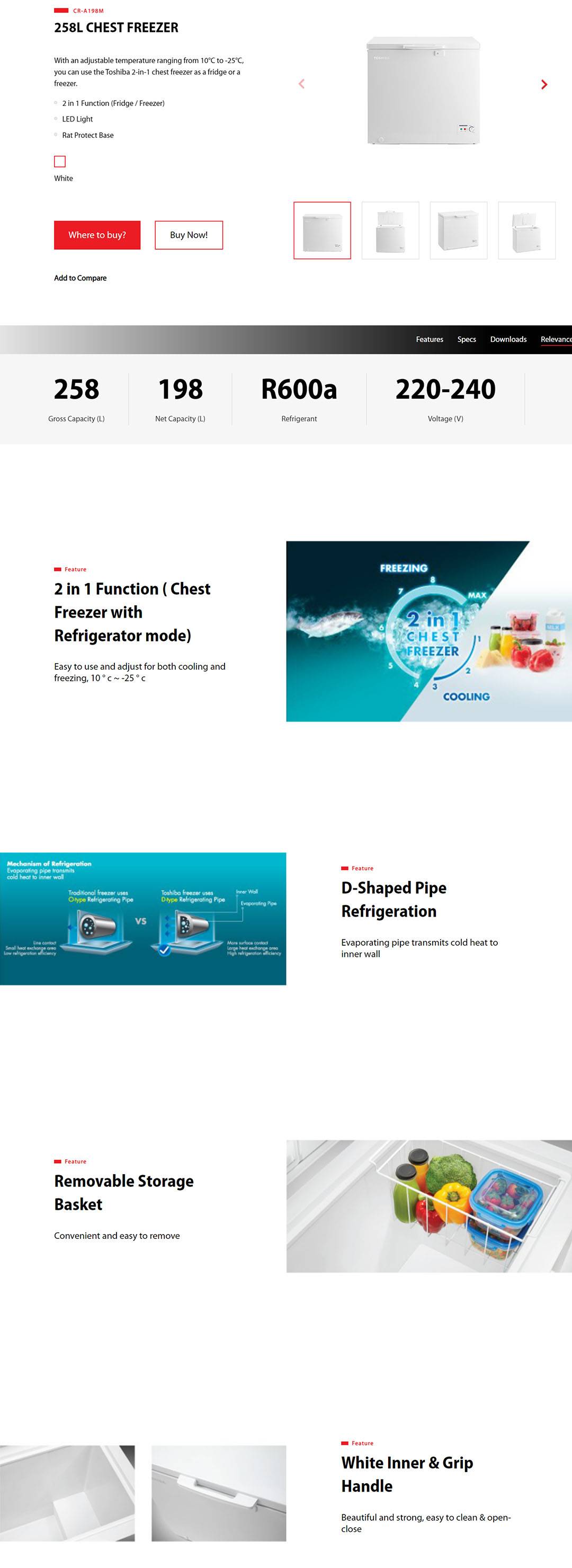 TOSHIBA 198L Chest Freezer CR-A198M | Chest Freezer with Refrigerator Mode | Removable Storage Basket | Chest Freezer with 1 Year Warranty