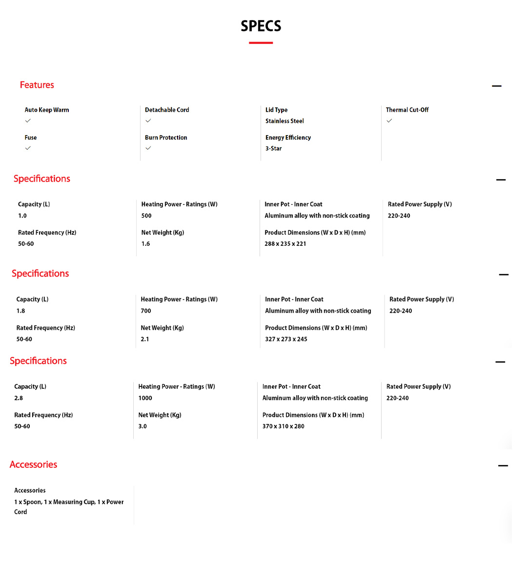 ● Accessories - Spoon,Measuring Cup,Power Cord