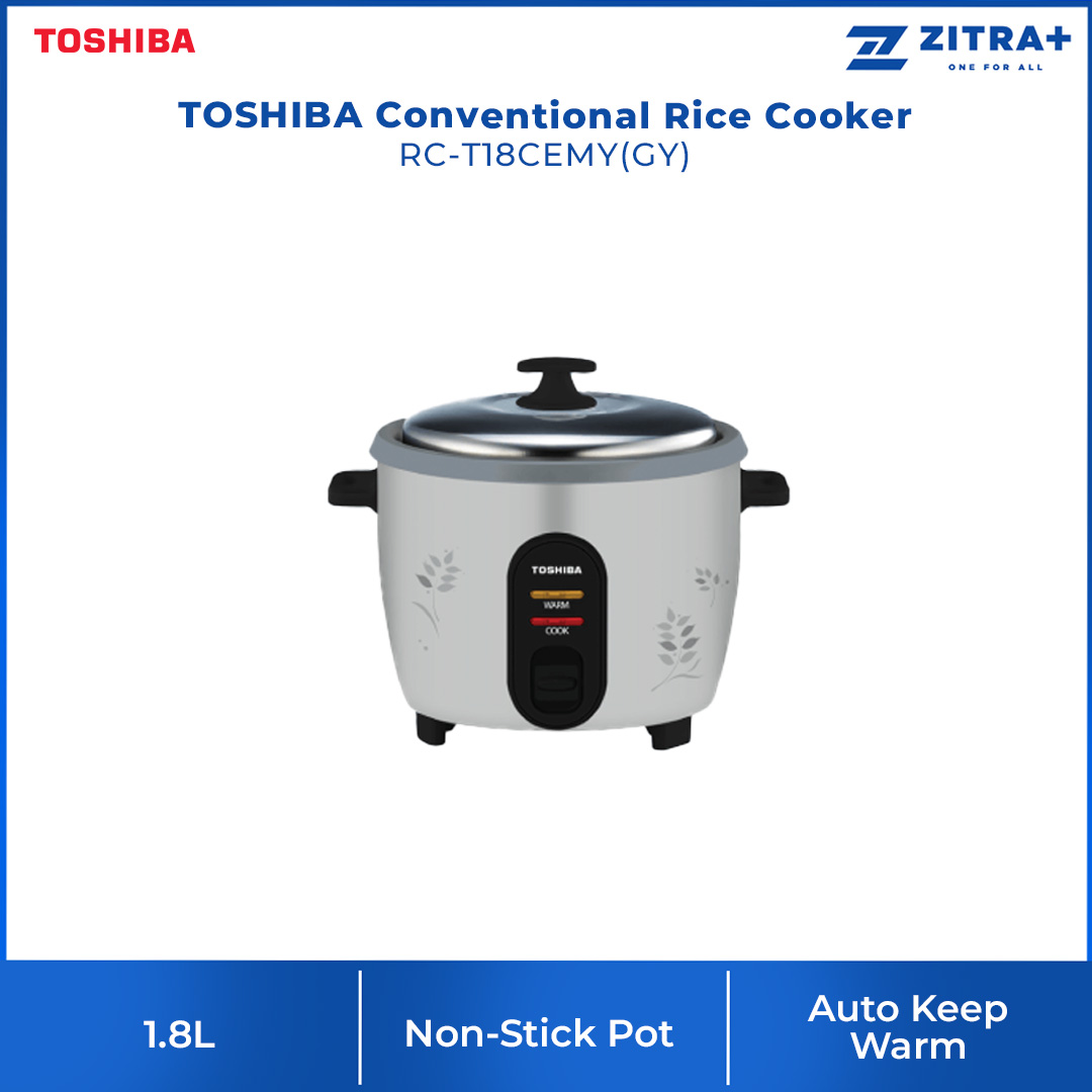 TOSHIBA 1L/1.8/2.8L Conventional Rice Cooker RC-T10CEMY(GY)/RC-T18CEMY(GY)/RC-T28CEMY(GY) | Non-Stick Pot | Automatic Keep Warm | Burn Protection | Rice Cooker with 1 Year General Warranty