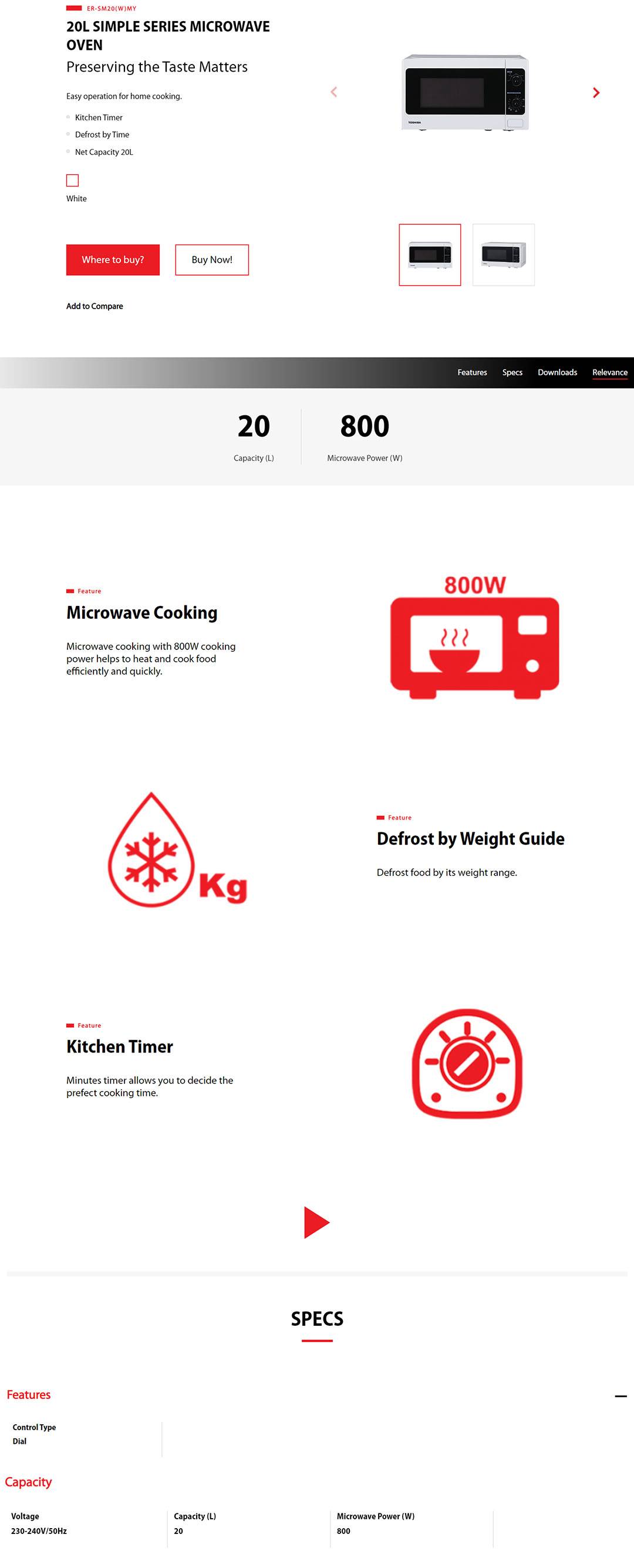 ● Microwave cooking with 800W ● Defrost by Weight Guide ● Kitchen Timer