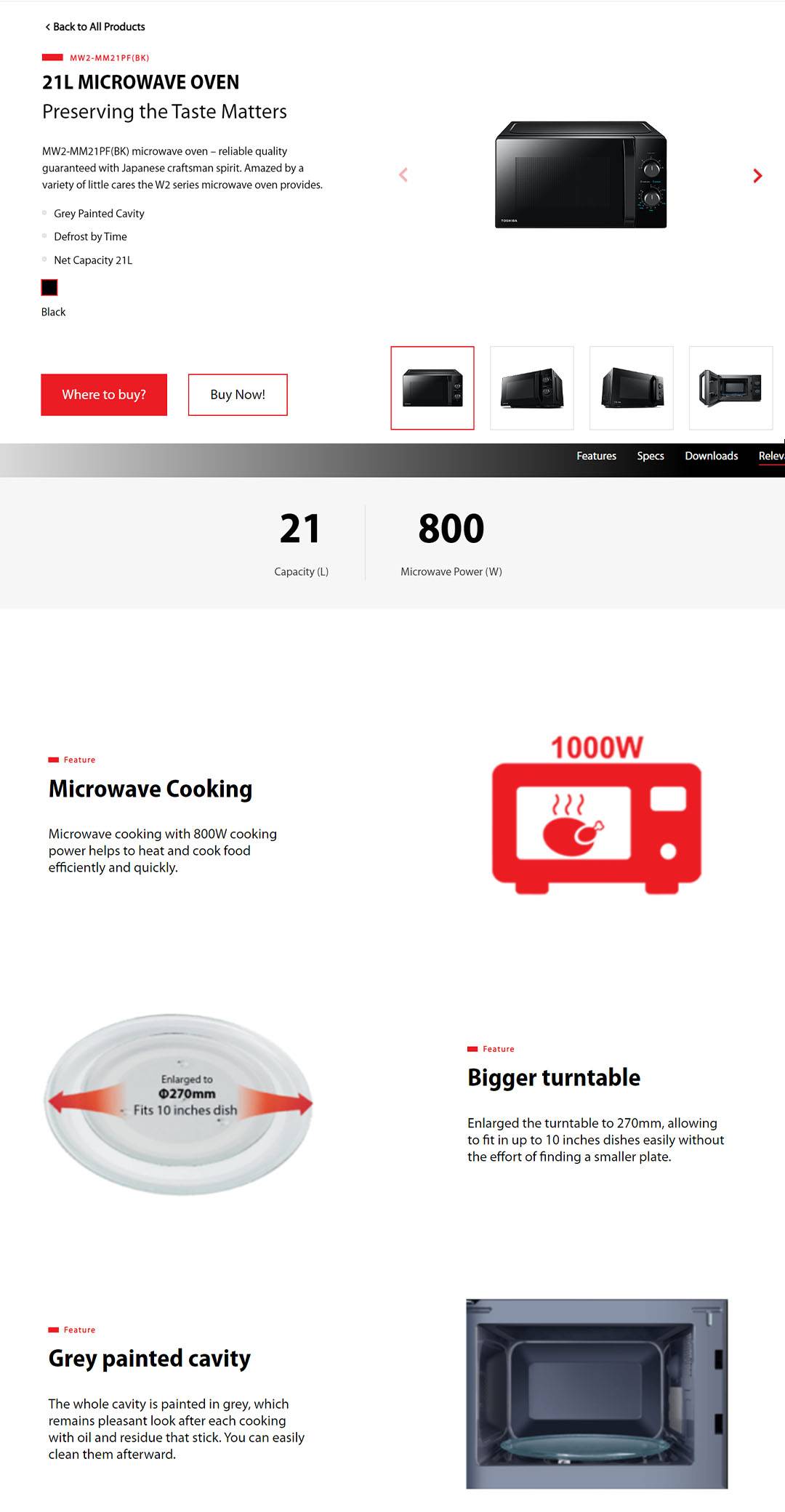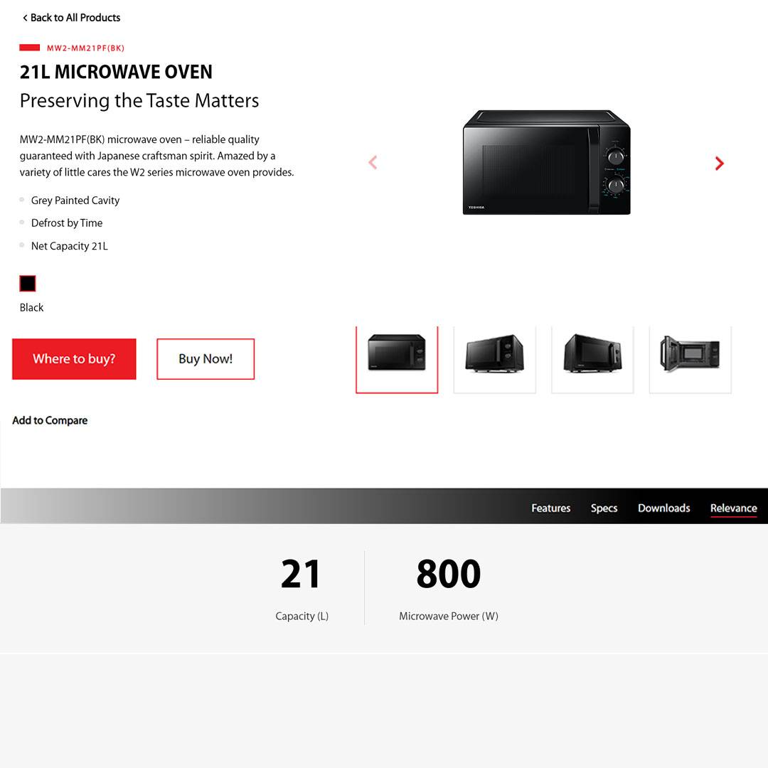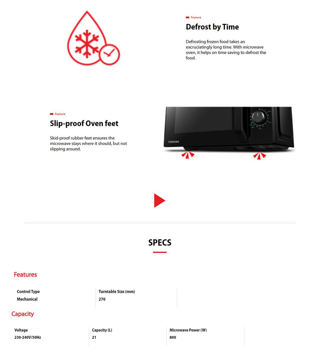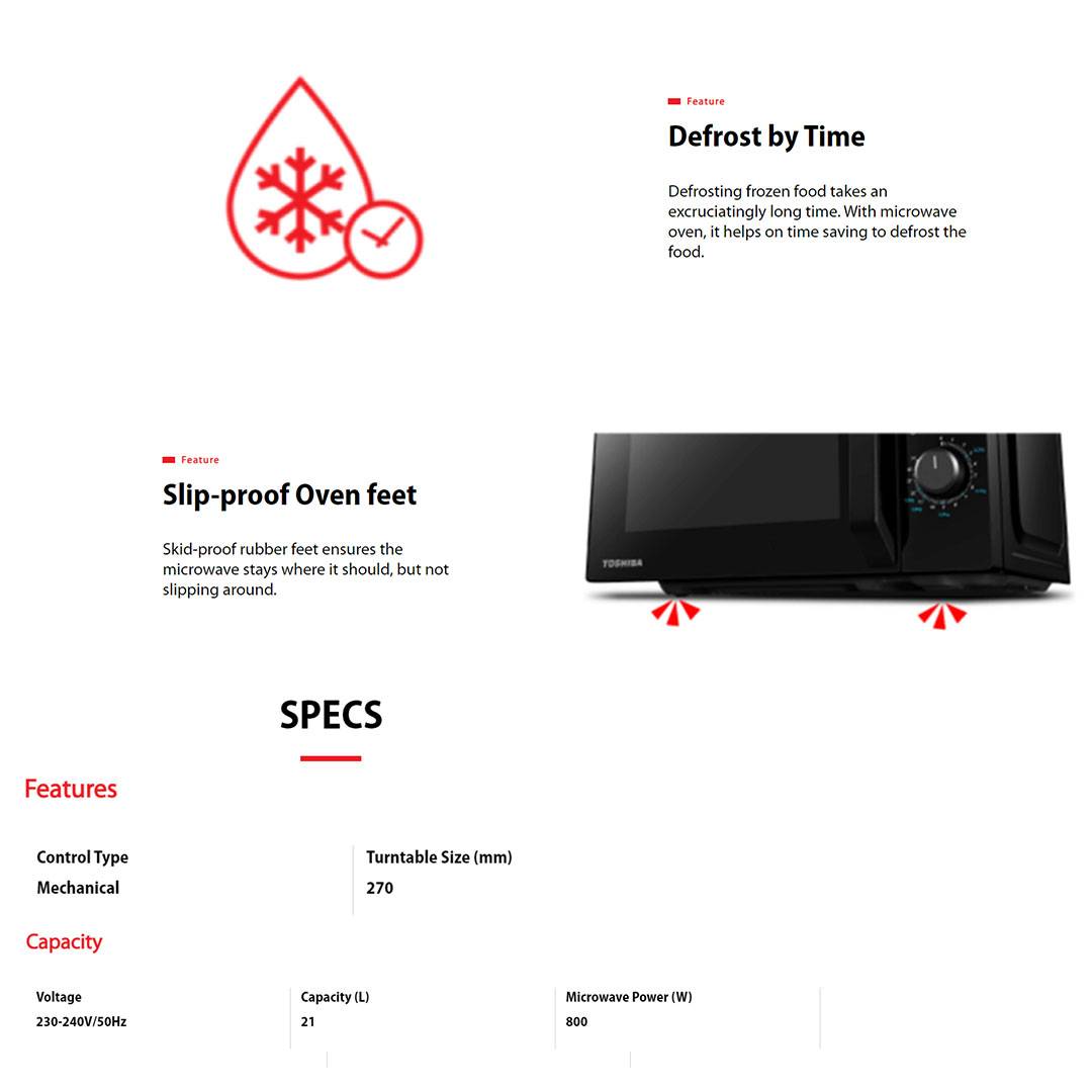 TOSHIBA 21L Microwave Oven MW2-MM21PF(BK) | Microwave Cooking | Bigger turntable | Microwave Oven with 1 Year Warranty