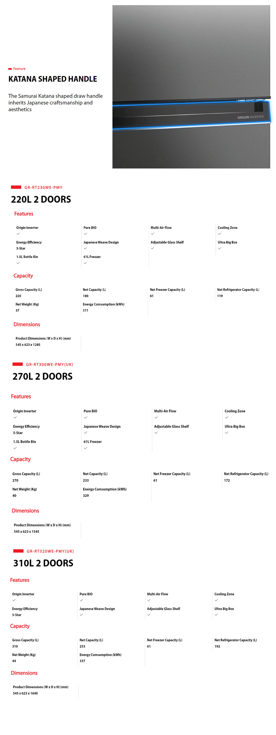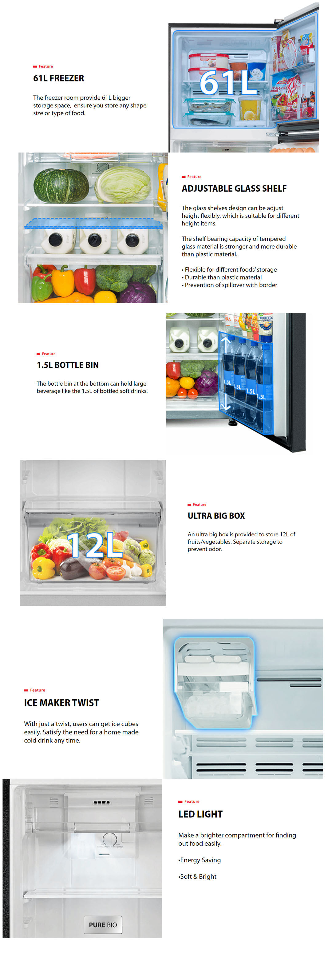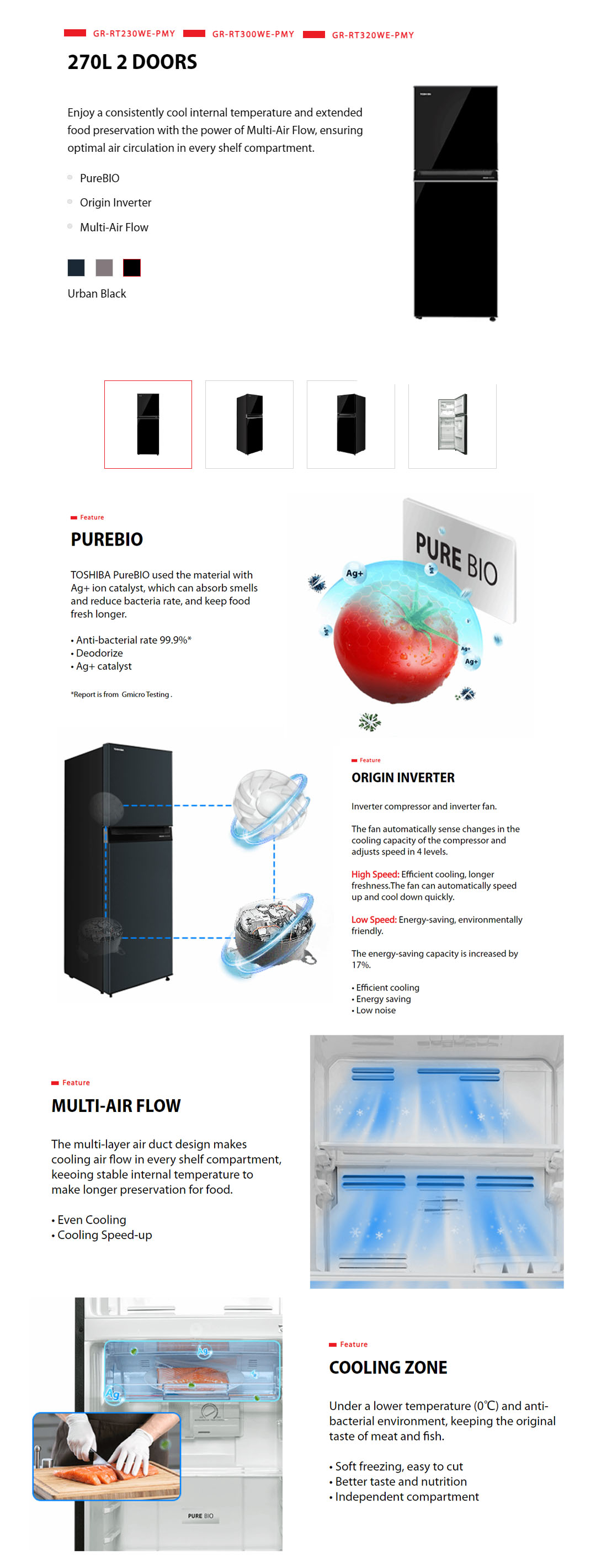 TOSHIBA 220L / 270L / 310L 2 Doors Top Mount Origin Inverter Refrigerator GR-RT230WE-PMY / GR-RT300WE-PMY / GR-RT320WE-PMY | Multi-Air Flow | Cooling Zone | Ultra Big Box | Refrigerator with 2 Year Warranty