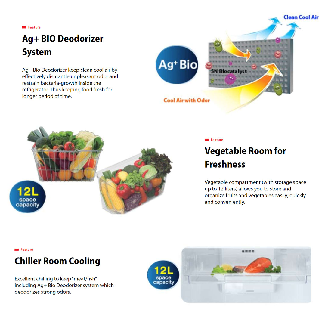 ● Cool Air Wrap ● Ag+ BIO Deodorizer ● Adjustable Door Pocket