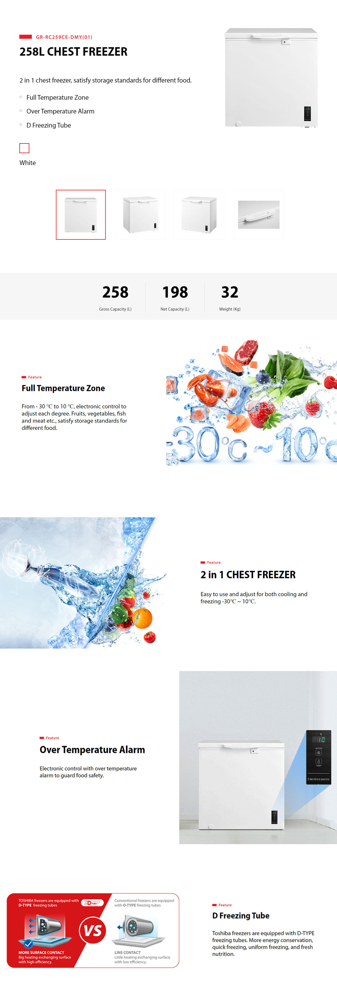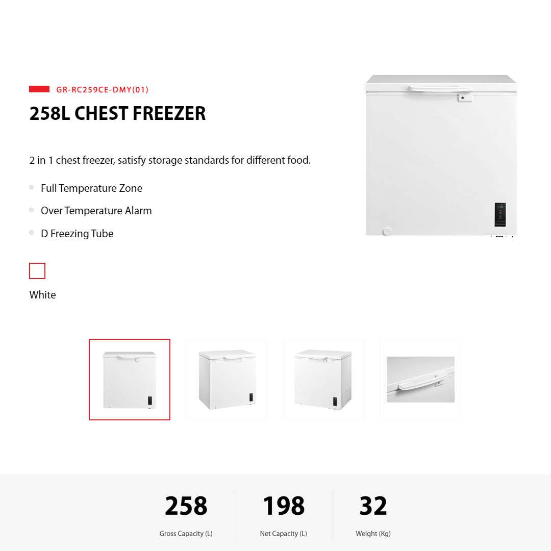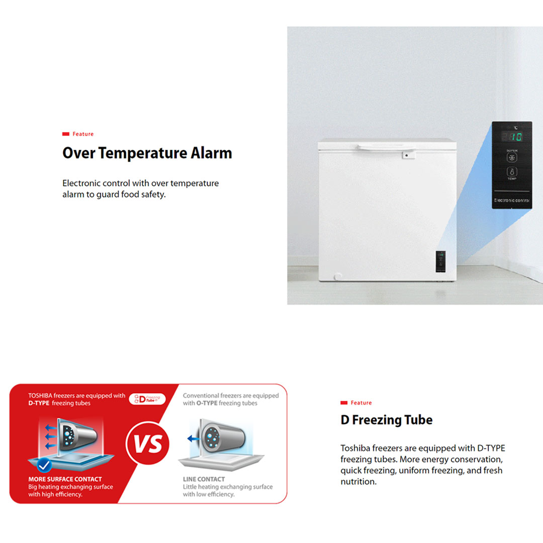 TOSHIBA 258L Chest Freezer GR-RC259CE-DMY(01) | Full Temperature Zone | Over Temperature Alarm | D Freezing Tube | Chest Freezer with 1 Year Warranty