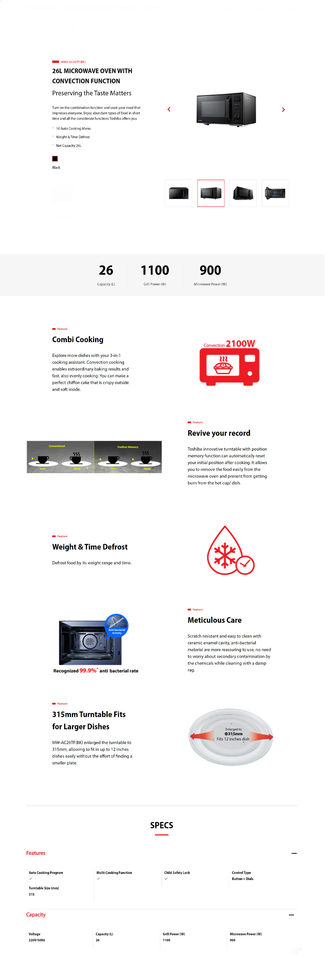 TOSHIBA 26L Microwave Oven with Convection Function MW2-AC26TF(BK) | Auto Cooking Program | Multi-Cooking Function | Child Safety Lock | Easy To Clean | Microwave with 1 Year Warranty