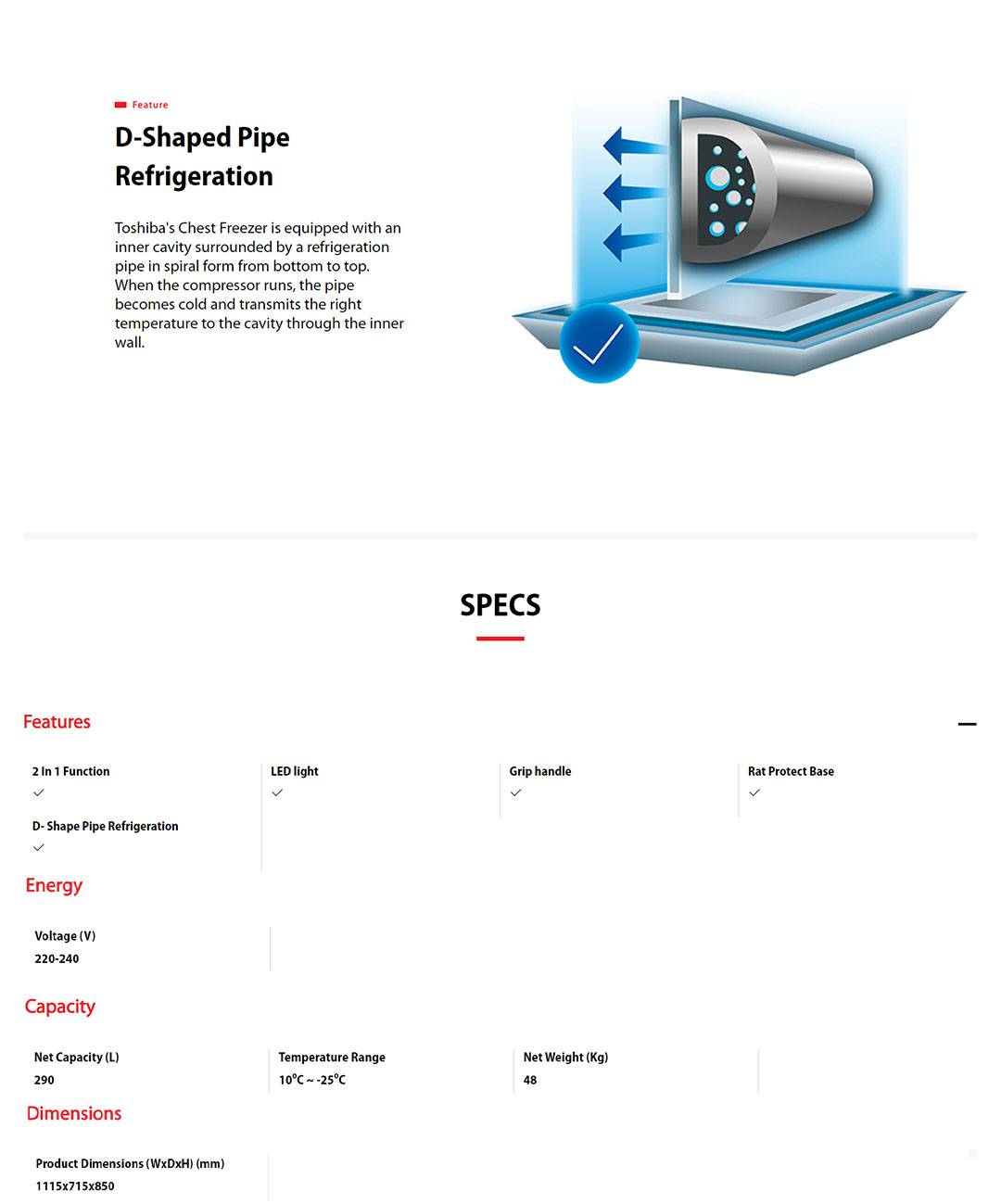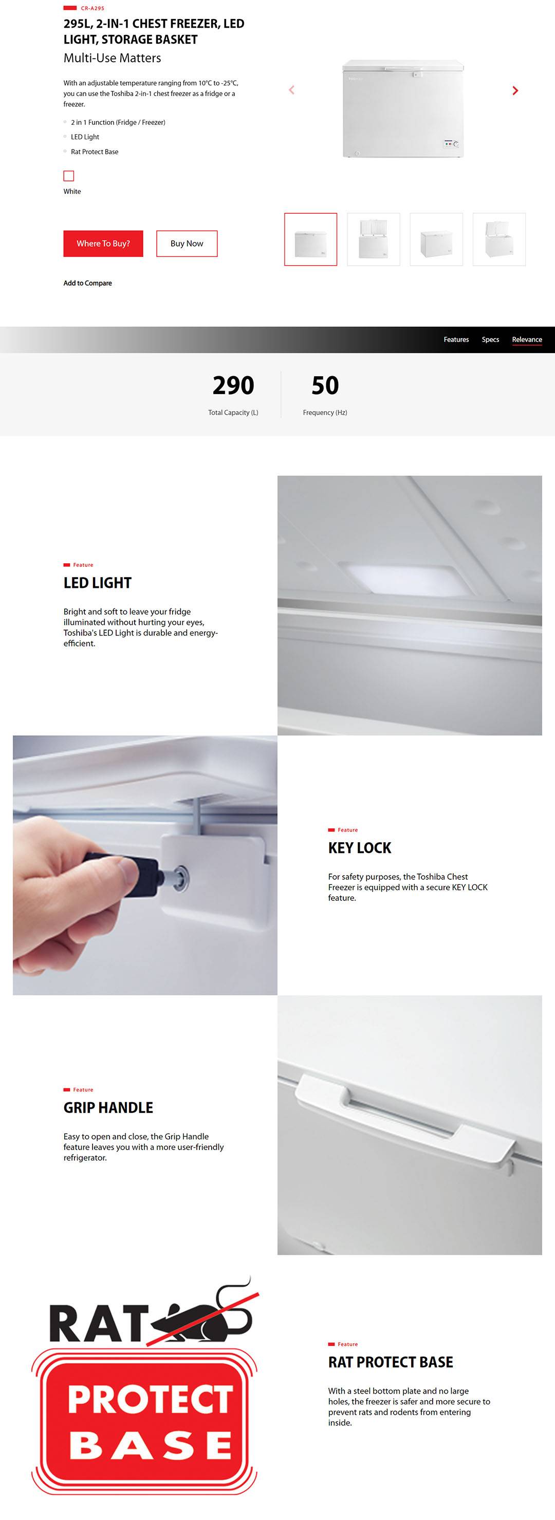 TOSHIBA 295L Chest Freezer CR-A295M | Chest Freezer with Refrigerator Mode | Removable Storage Basket | Chest Freezer with 1 Year Warranty