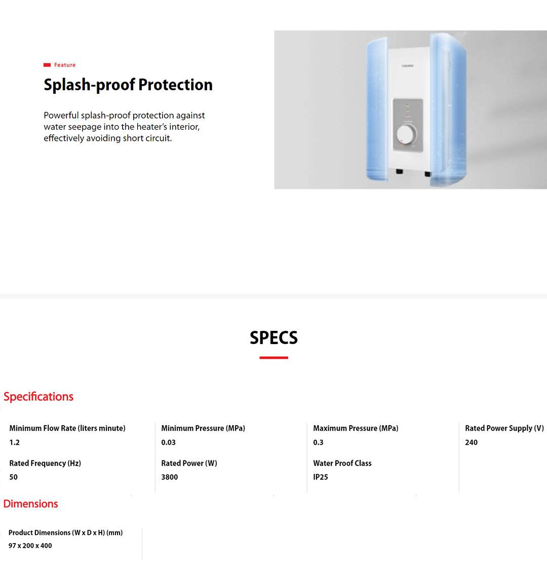● Splash Prove Protection