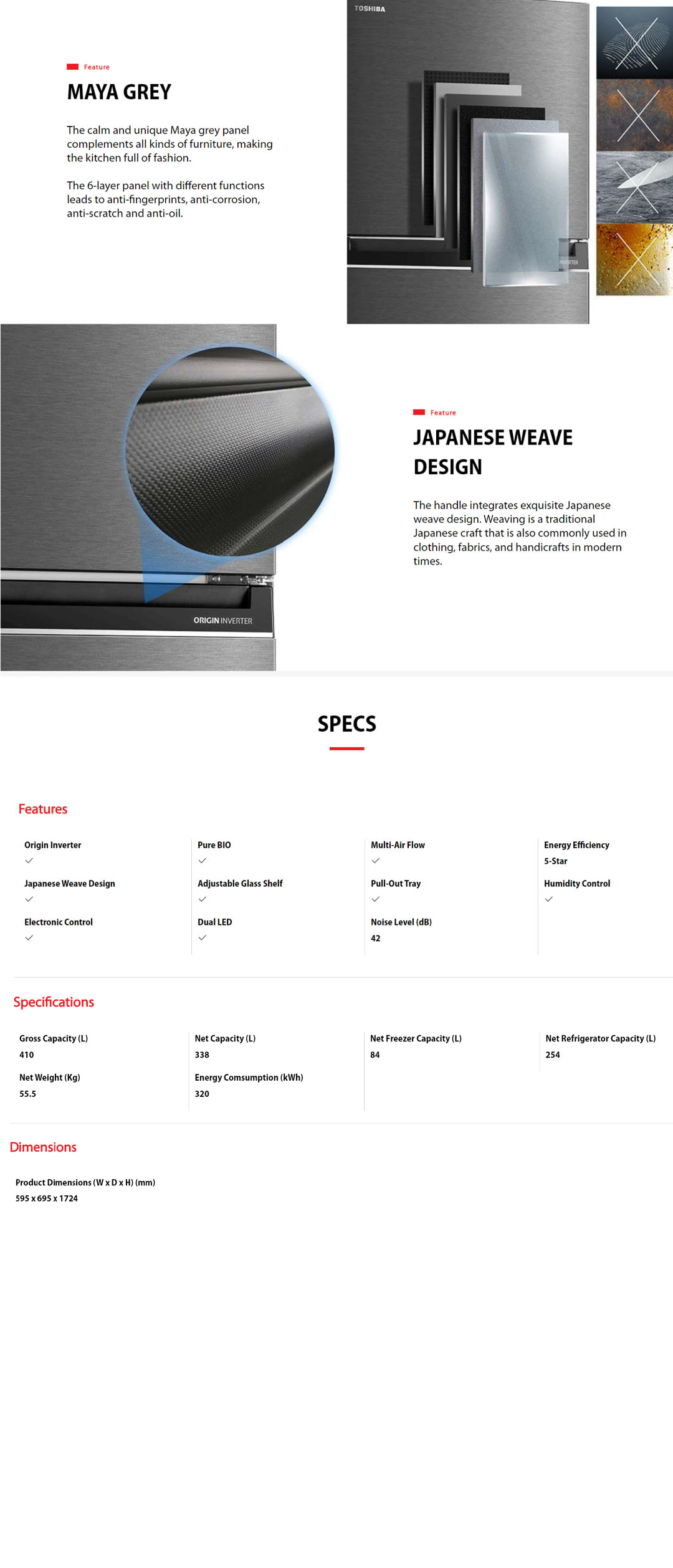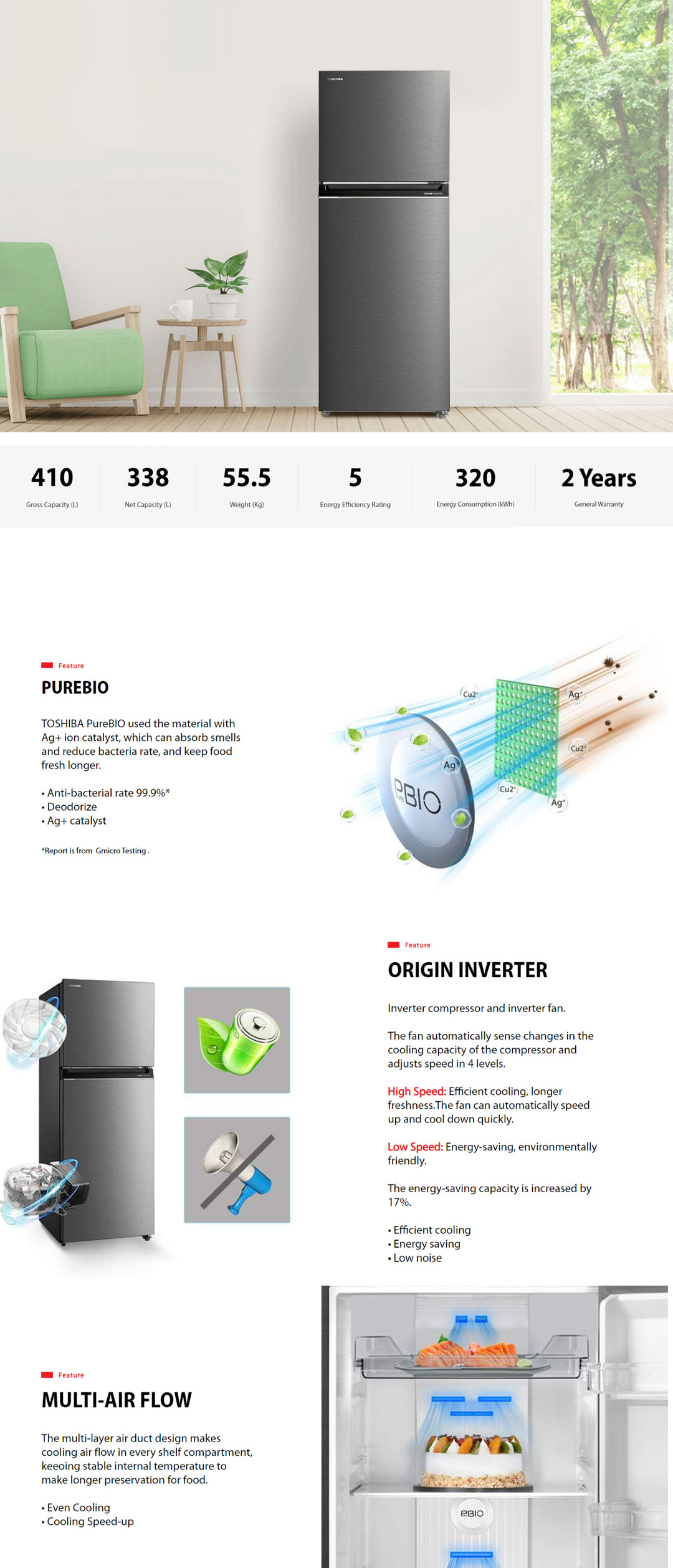 TOSHIBA 410L 2 Doors Inverter Pure BIO Refrigerator GR-RT466WE-PMY(58) | Electronic Control | Multi- Air Flow | Origin Inverter | Refrigerator with 1 Year Warranty