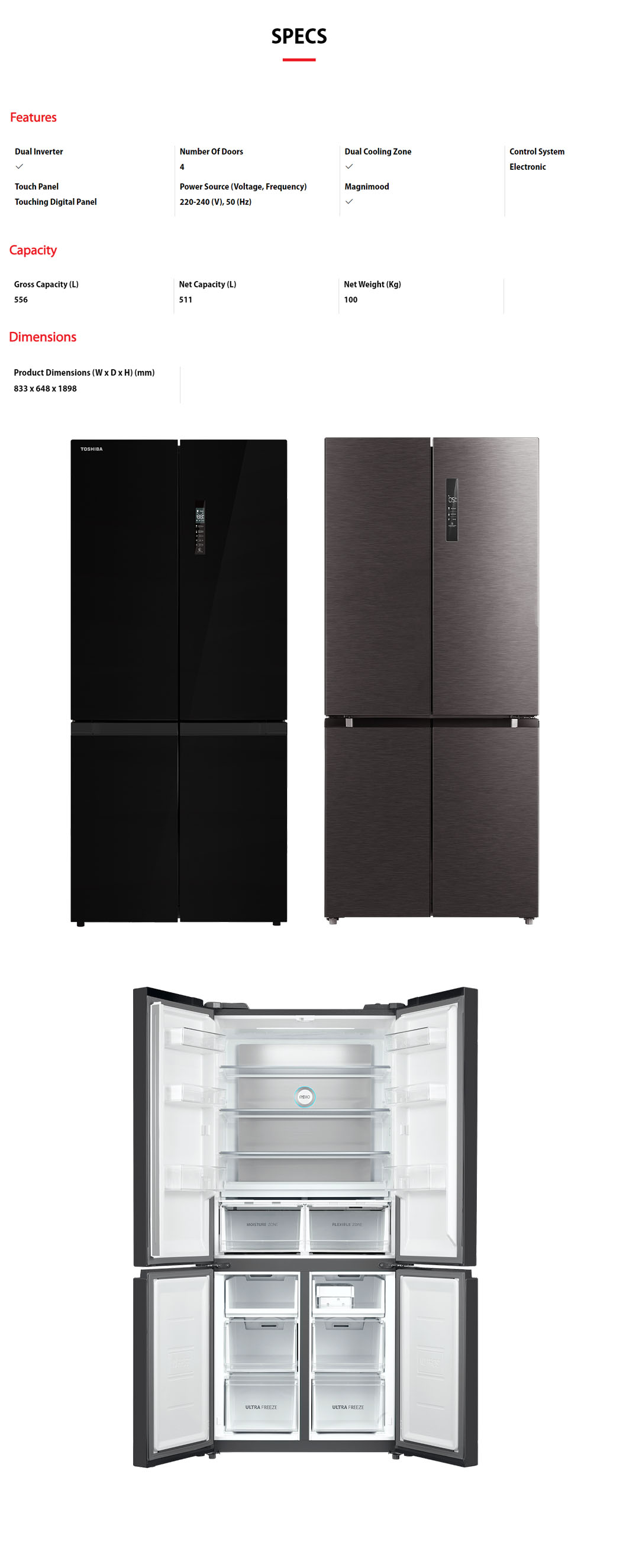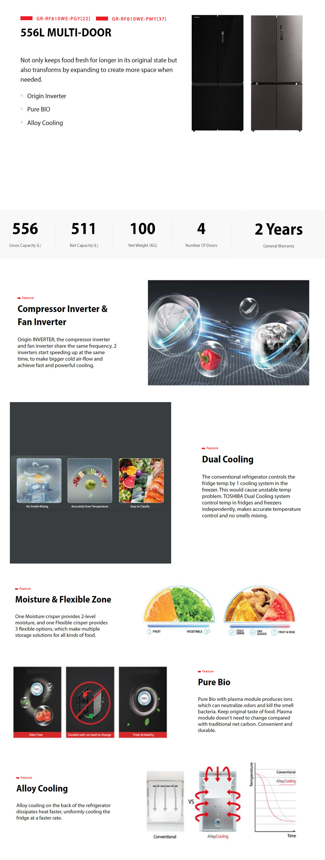 TOSHIBA 556L Multi Doors Dual Inverter Refrigerator GR-RF610WE-PGY[22] / GR-RF610WE-PMY(37) | Compressor and Fan Inverter | Dual Cooling | Refrigerator with 2 Year Warranty