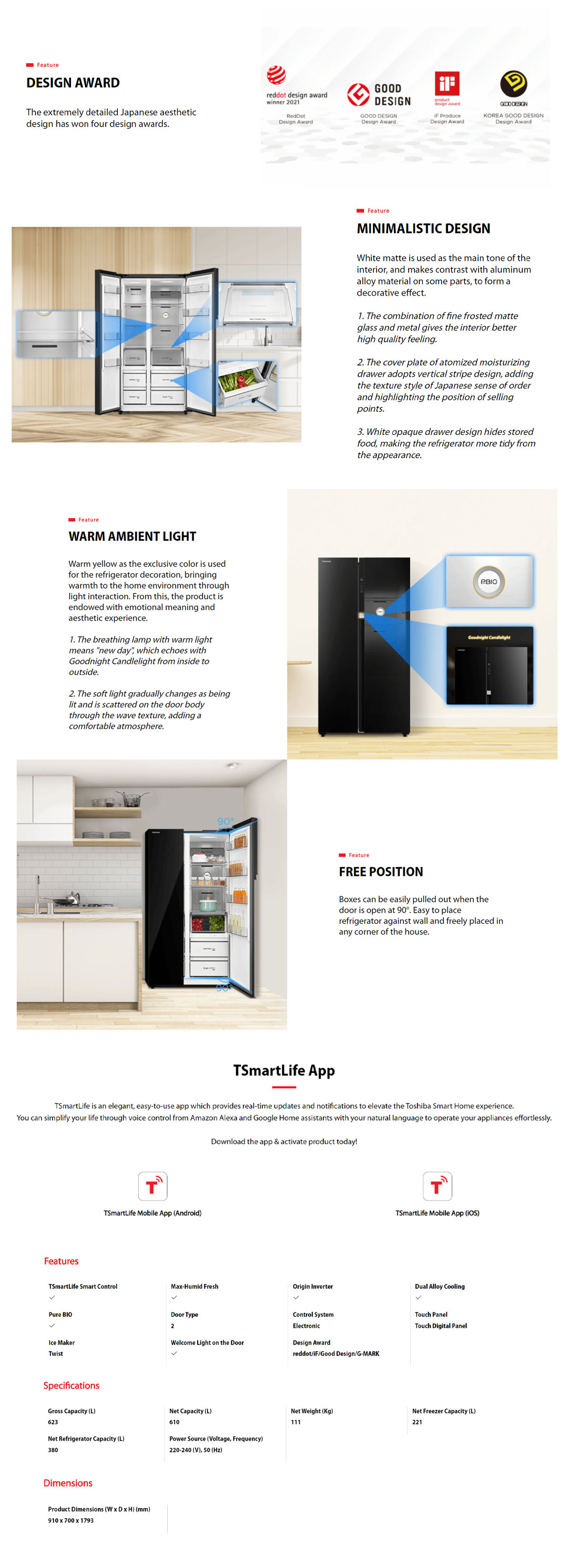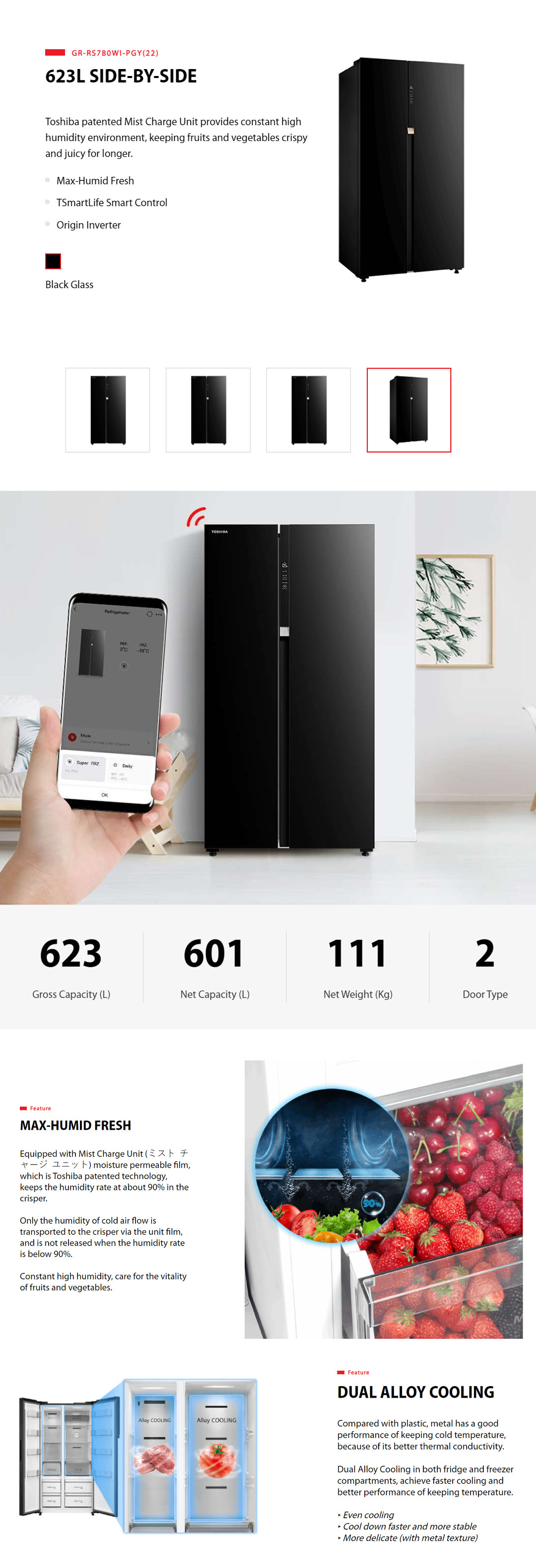 Toshiba 623L Side by Side Origin Inverter Refrigerator GR-RS780WI-PGY(22) | Dual Alloy Cooling | Pure Bio | Touch Digital Panel | Twist Ice Maker | TSmartLife Smart Control | Refrigerator with 1 Year Warranty