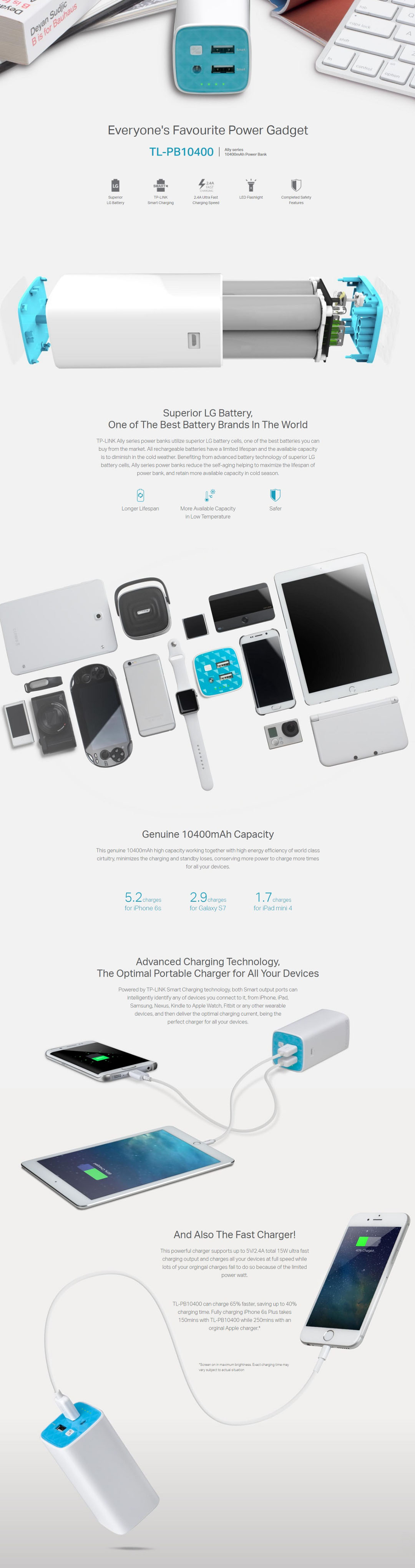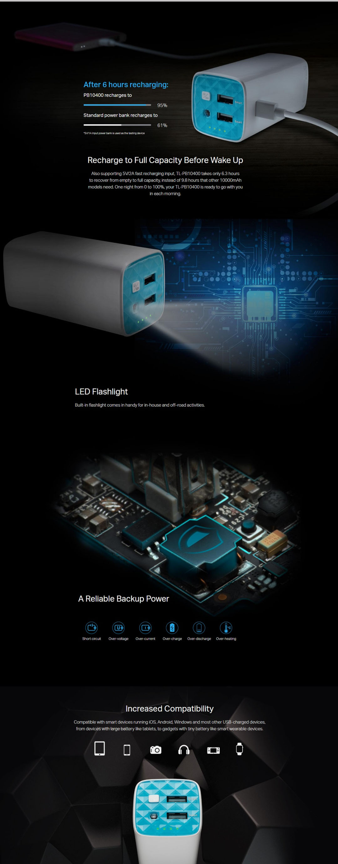 TP-Link 10400mAh Power Bank TL-PB10400 | Dual USB Ports | Compatible with 5V Input USB-Charged Devices | Multiple Safety Protections | Practical Flashlight | Powerbank with 3 Months Warranty