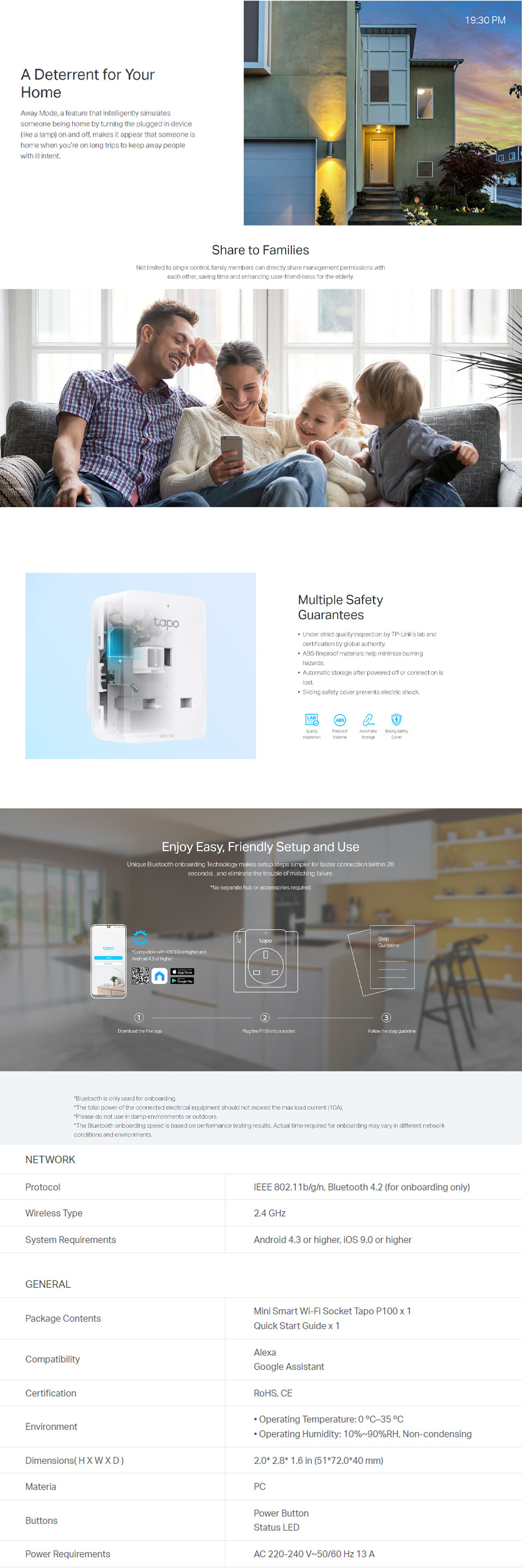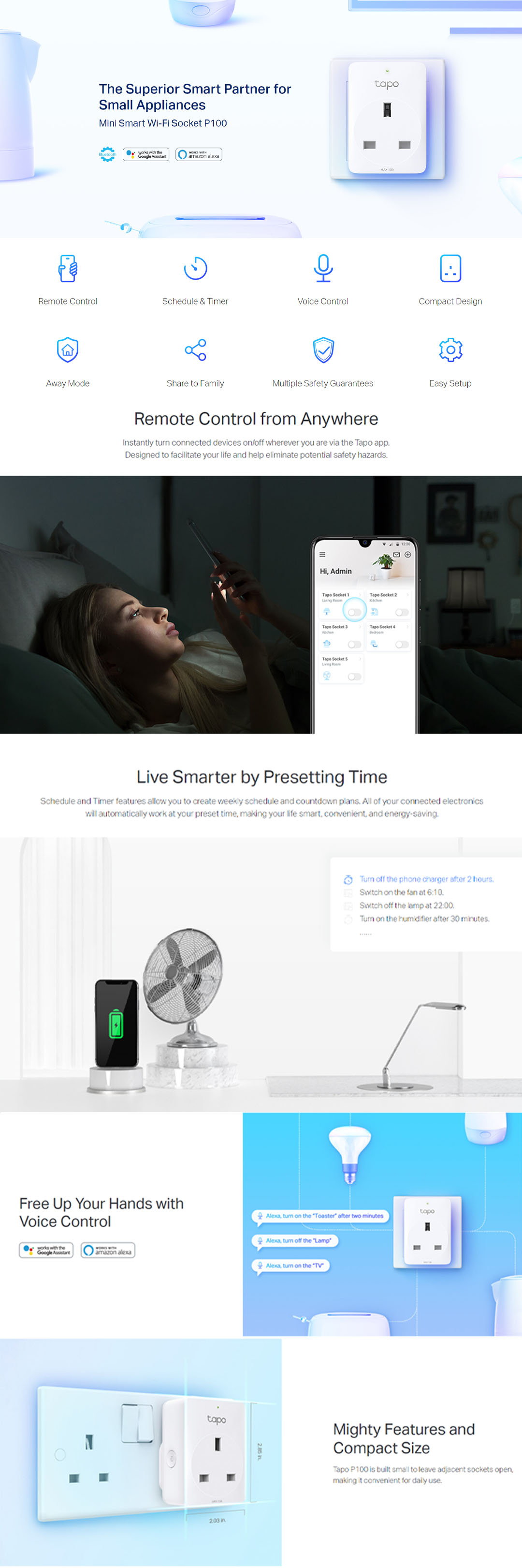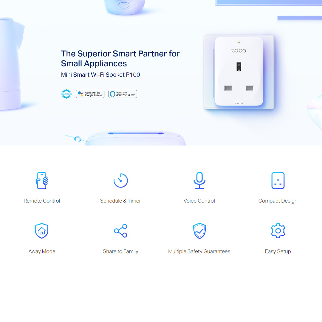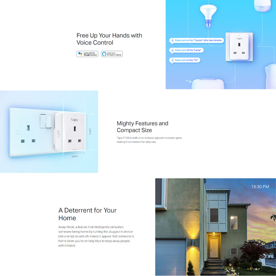 TP-Link Mini Smart Wi-Fi Socket TAPO P100 | Remote Control | Voice Control | Compact Design | Away Mode | Easy Setup