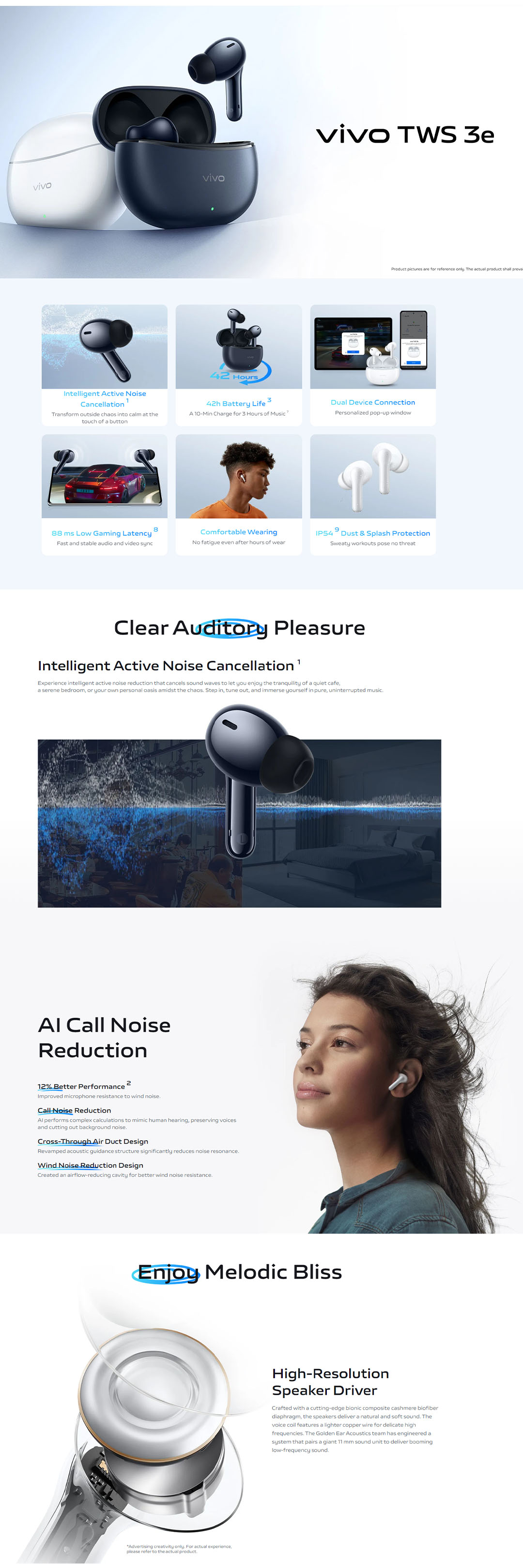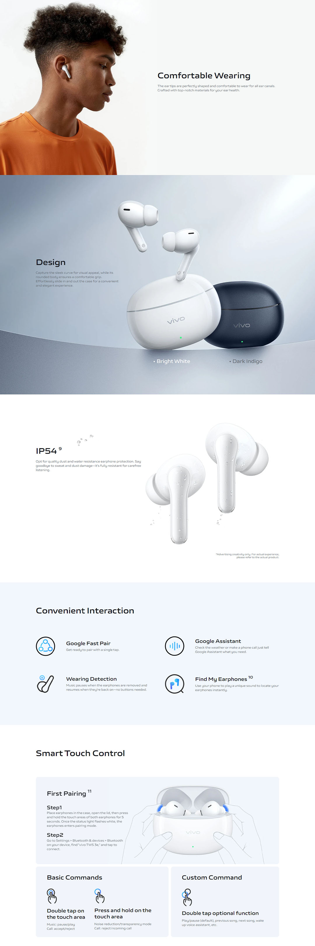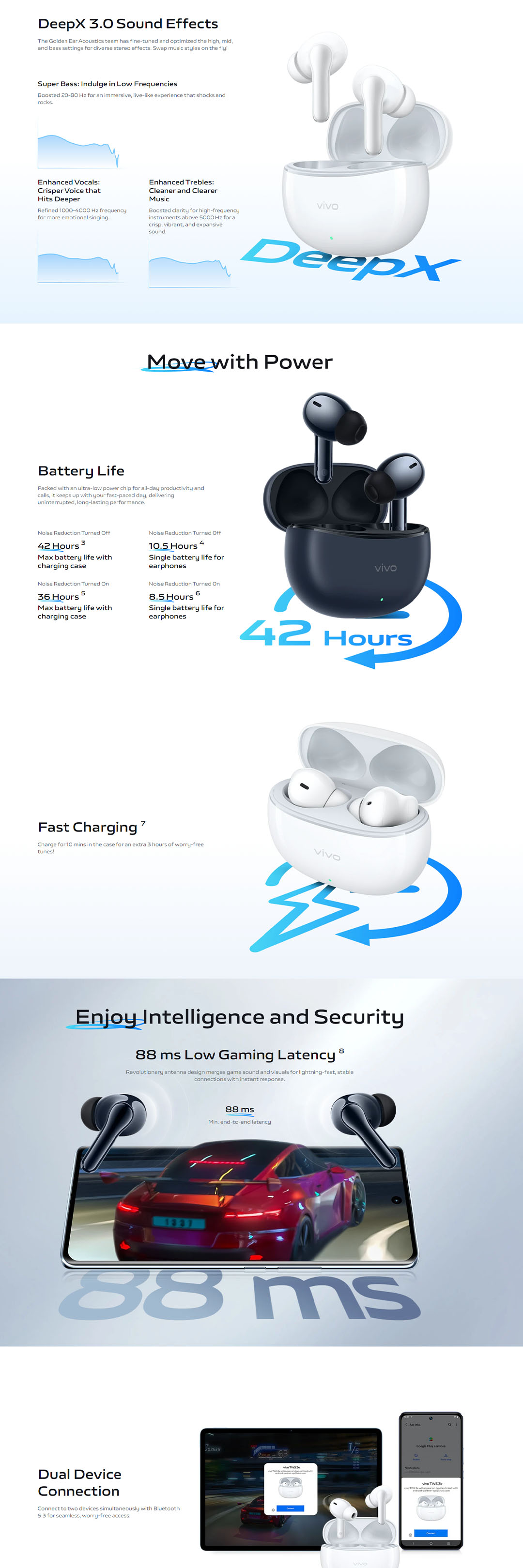 vivo TWS 3e | Fast Charging | Battery Life 42 Hours | AI Call Noise Reduction | Smart Touch Control | Dual Device Connection | Water Resistance Earphone Protection | Earbuds with 1 Year Warranty