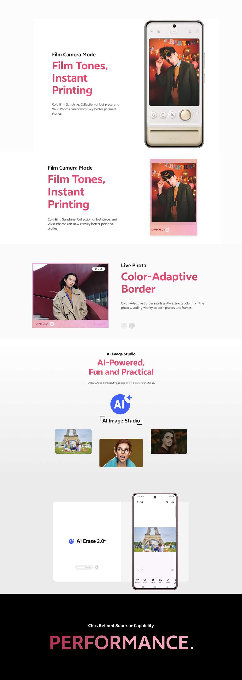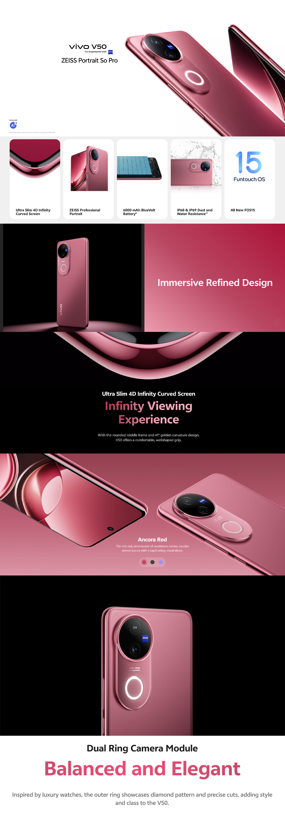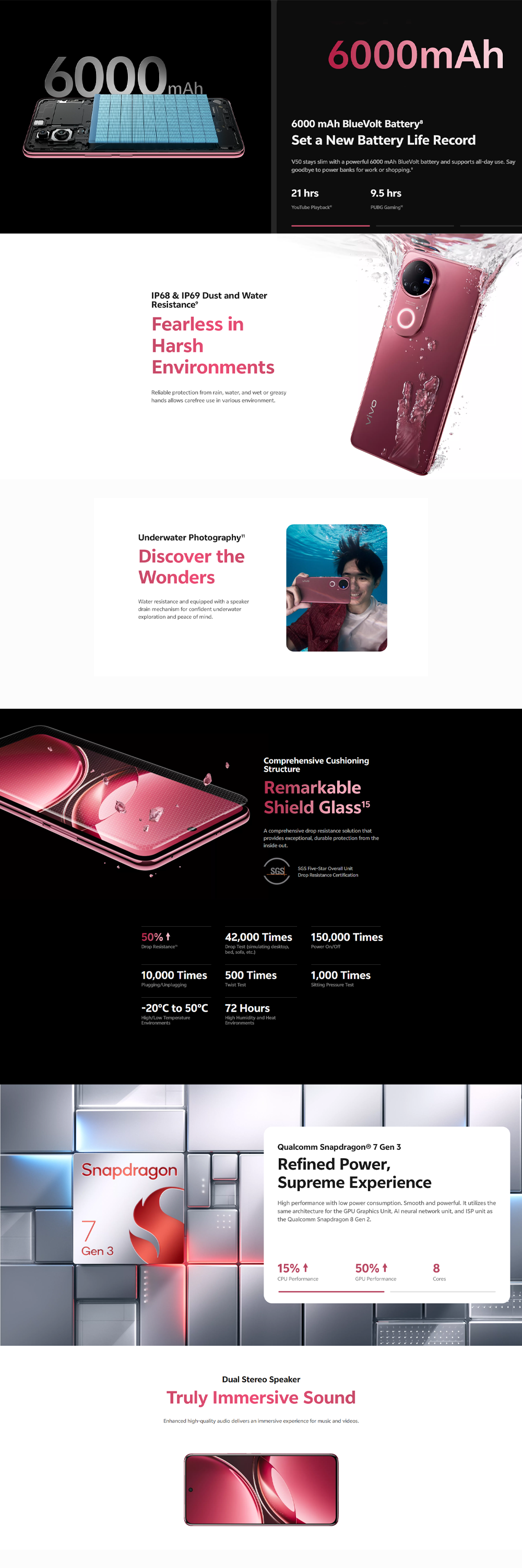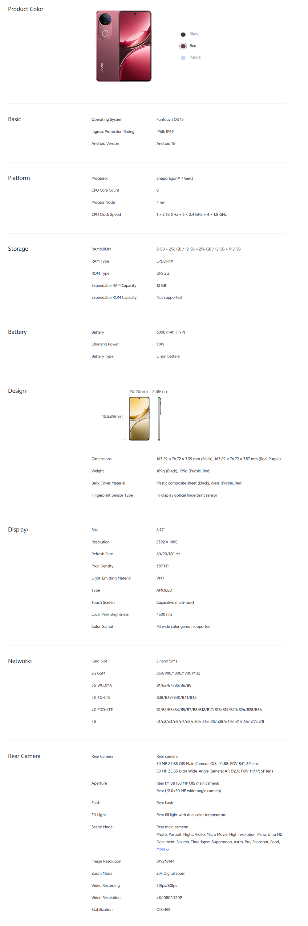 vivo V50 5G 8GB+256GB/12GB+256GB/12GB+512GB | 6.77 inches, AMOLED | Qualcomm SM7550-AB Snapdragon 7 Gen 3 (4 nm) | Li-Po 6000 mAh, 90W Flashcharge