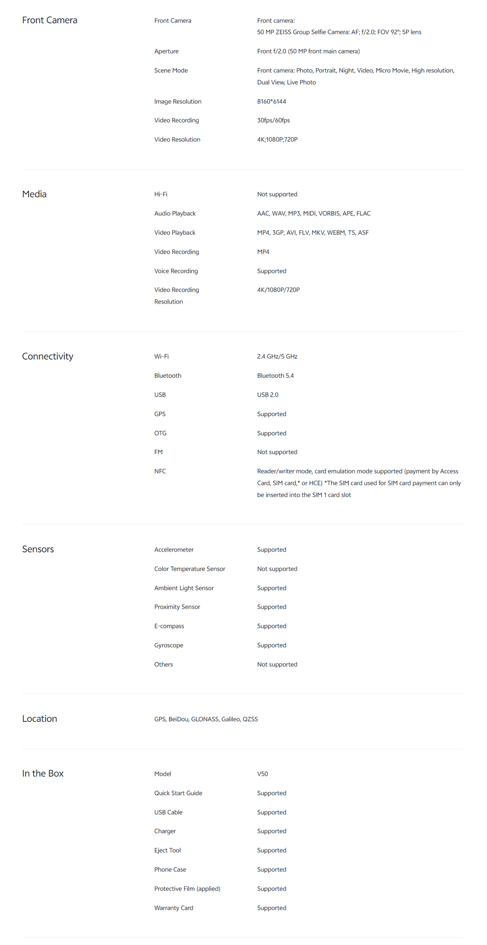 ▪ Camera Front(MP): 50MP