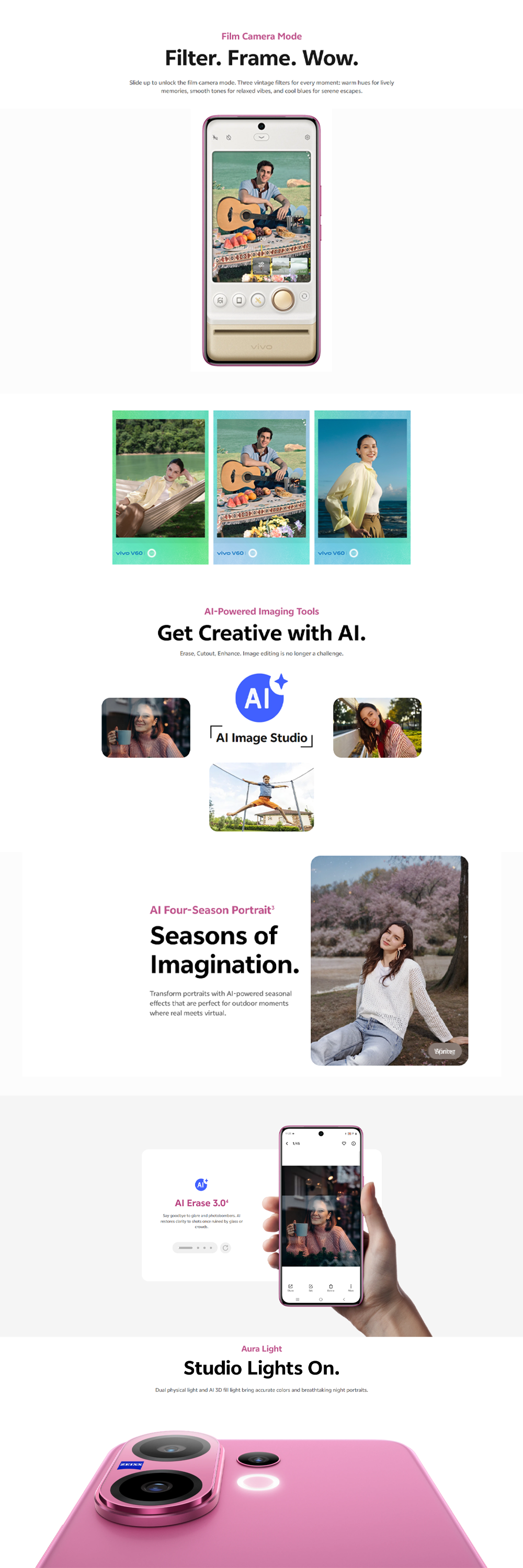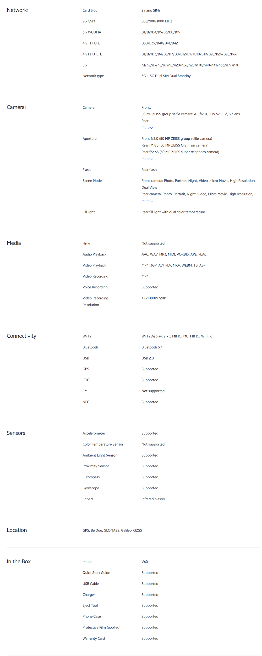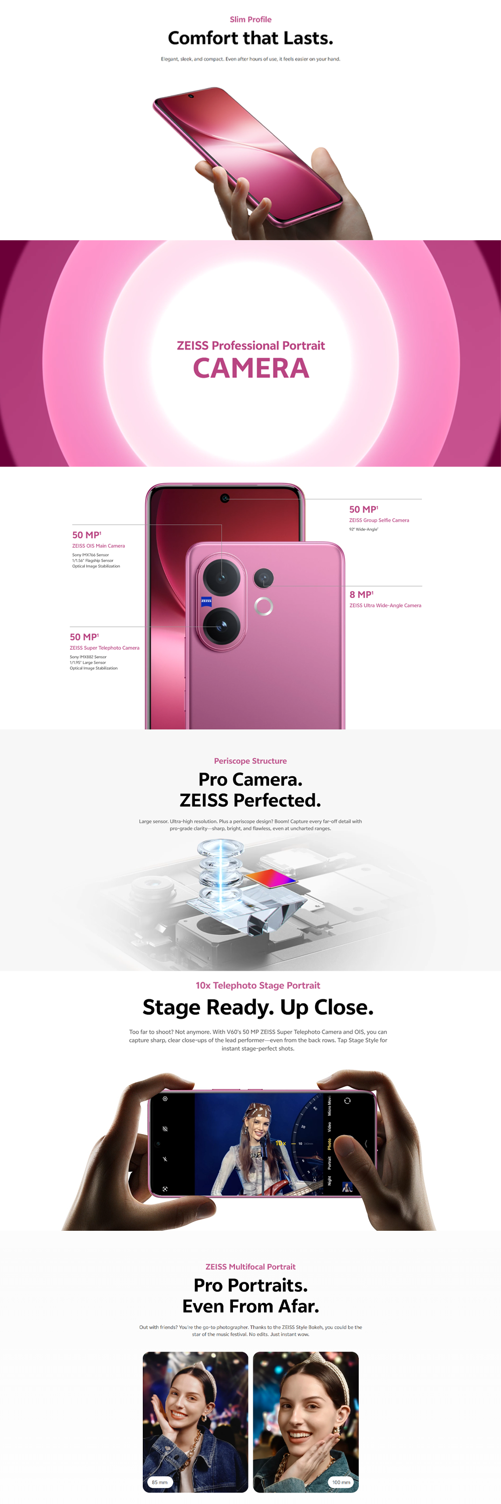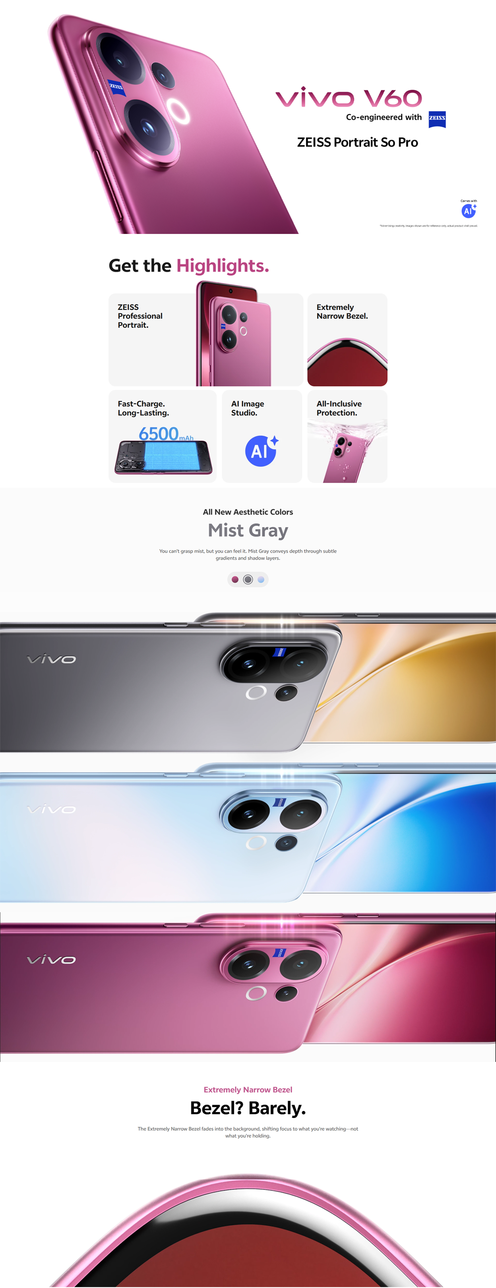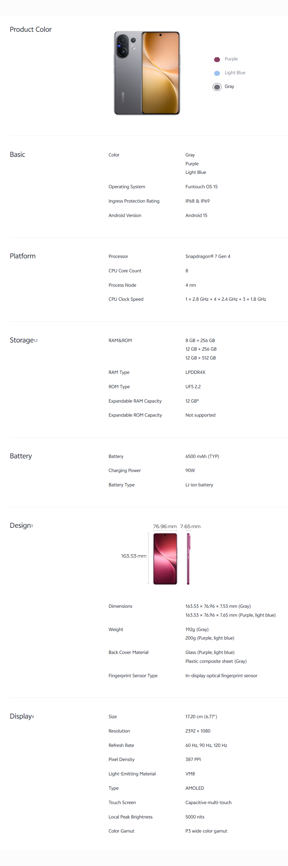 vivo V60 5G | Rear Camera 50MP | Qualcomm SM7750-AB Snapdragon 7 Gen 4 (4 nm) | 6.77 inches, AMOLED | Li-Po 6500 mAh,
