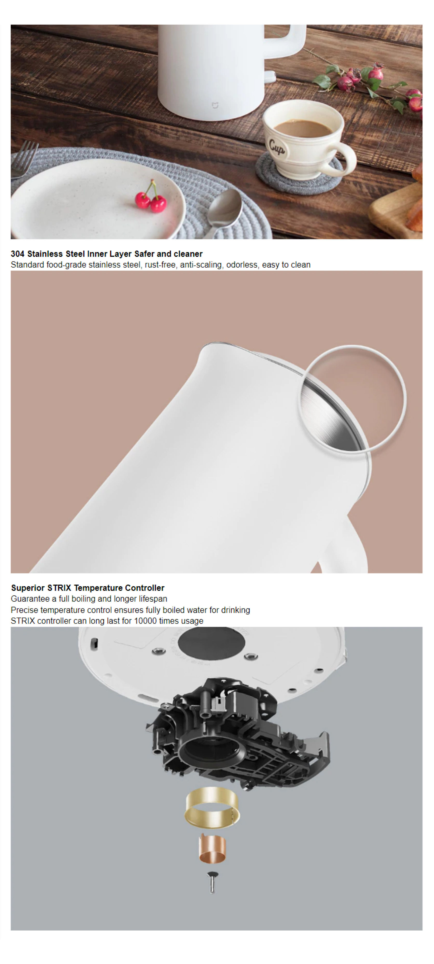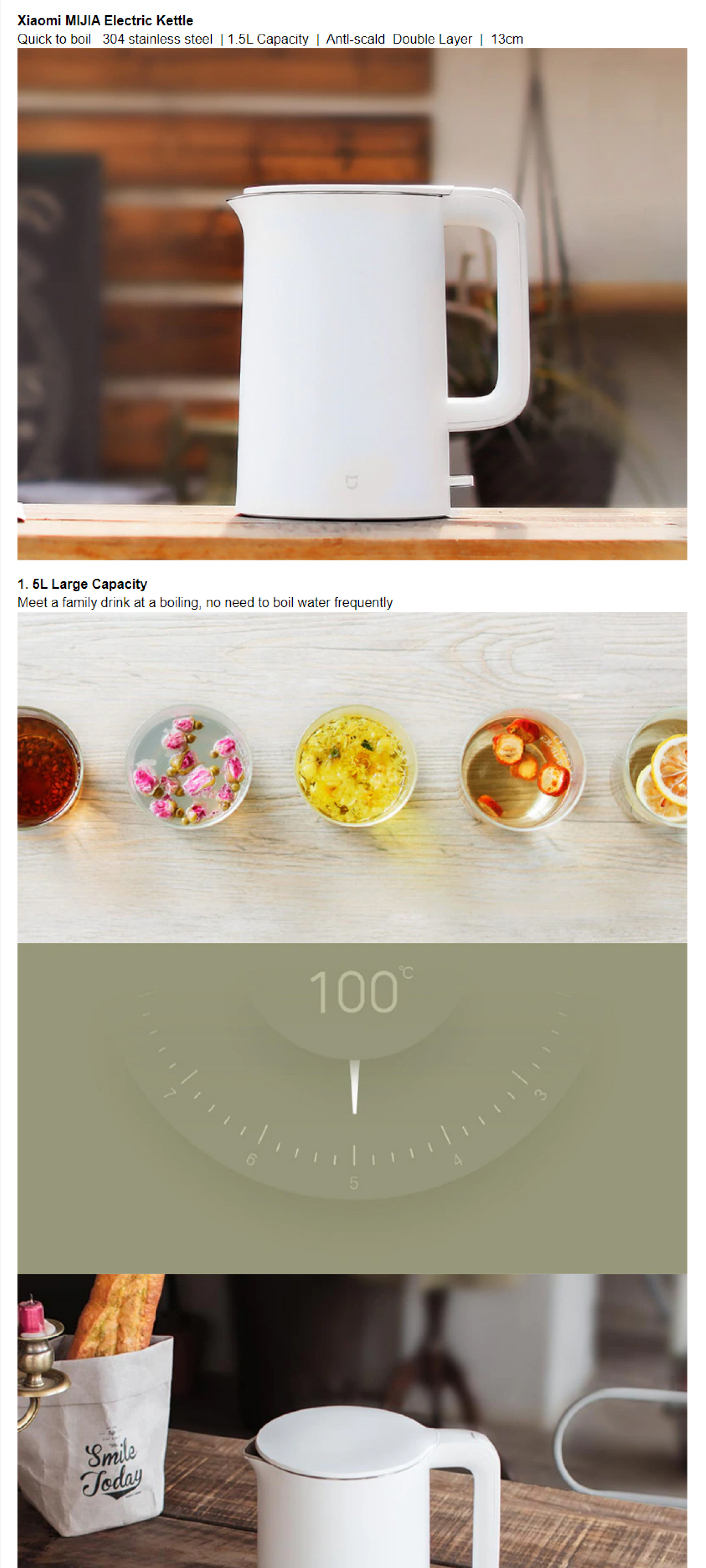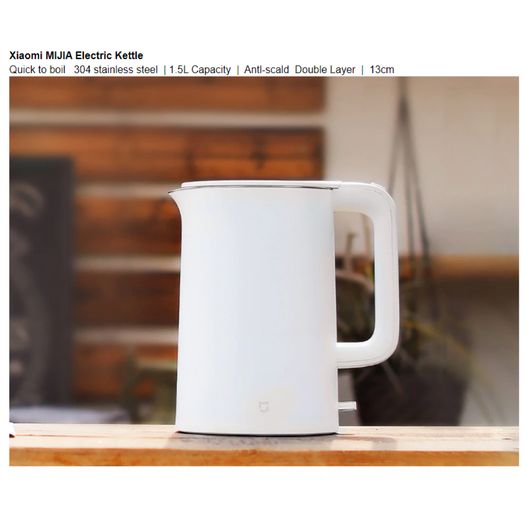 Xiaomi 1.5L Mijia Electric Kettle MJDSH01Y | 304 Stainless Steel Inner Layer | Triple Security Protection | STRIX Temperature Control | Anti-scalding Double Layers | Kettle with 1 Year Warranty