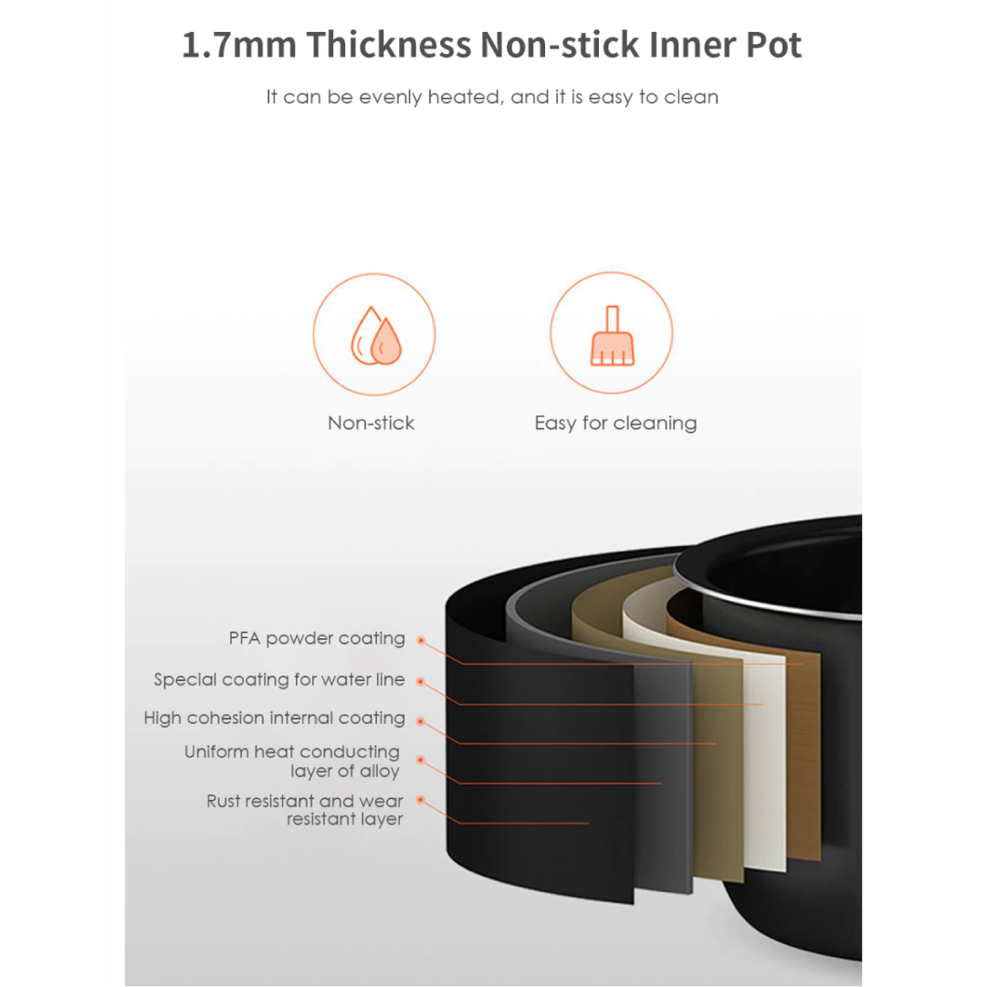 Xiaomi 1.6L Mijia Smart Rice Cooker DFB201CM (China Version) | 1.7mm Thick Non-stick Inner Pot | LED Display | APP Remote Control | 24 Hours Preset Timer | Rice Cooker with 1 Year Warranty