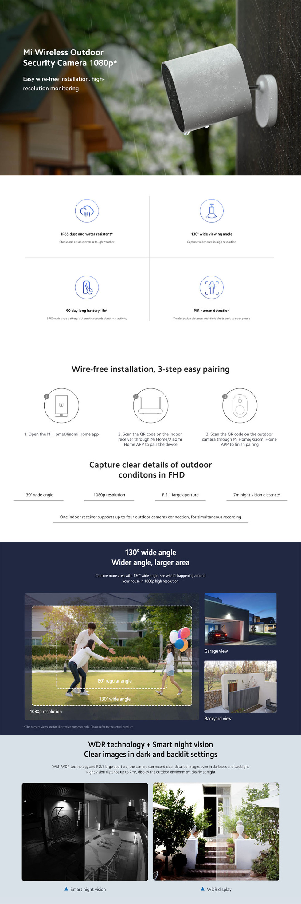 Xiaomi 1080P Mi Wireless Outdoor Security Camera Set MWC13 | PIR Human Detection | IP65 Dust and Water Resistant | WDR Technology + Smart Night Vision | Security Camera with 1 Year Warranty