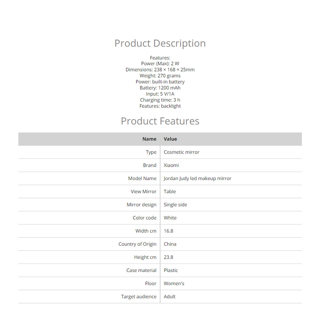 Xiaomi 1200mah Jordan & Judy Makeup Mirror NV026 | Touch-Sensitive Control | LED Naturally Fills Light | Adjustable Angle | Long Battery life | LED Makeup Mirror with 1 Year Warranty