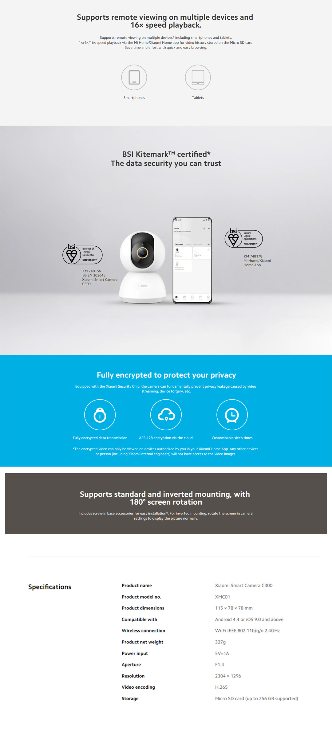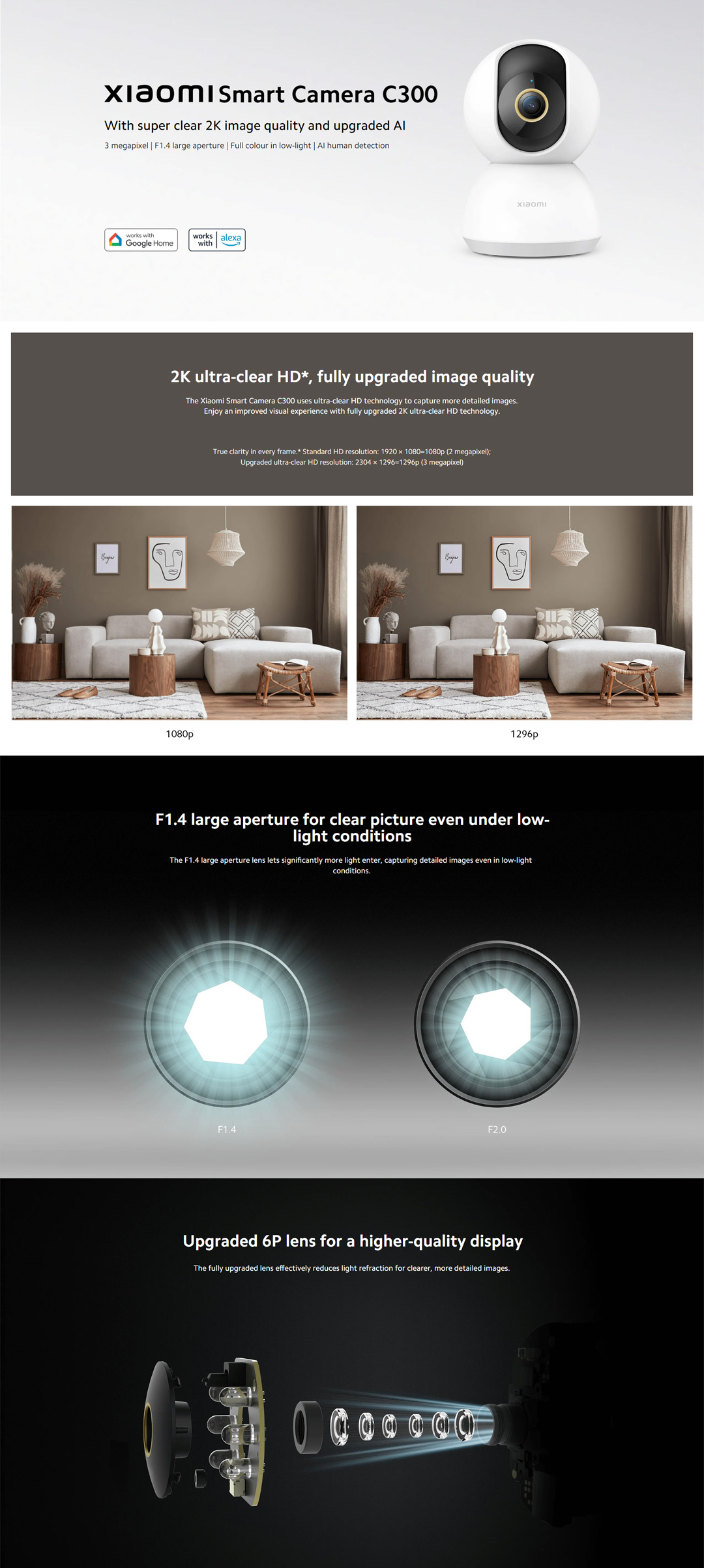 Xiaomi 1296P Smart Camera C300 XMC01 | 2K Ultra-clear HD | Upgraded 6P Lens for a Higher-quality Display | Two-way Voice Calls in Real Time | Smart Camera with 1 Year Warranty