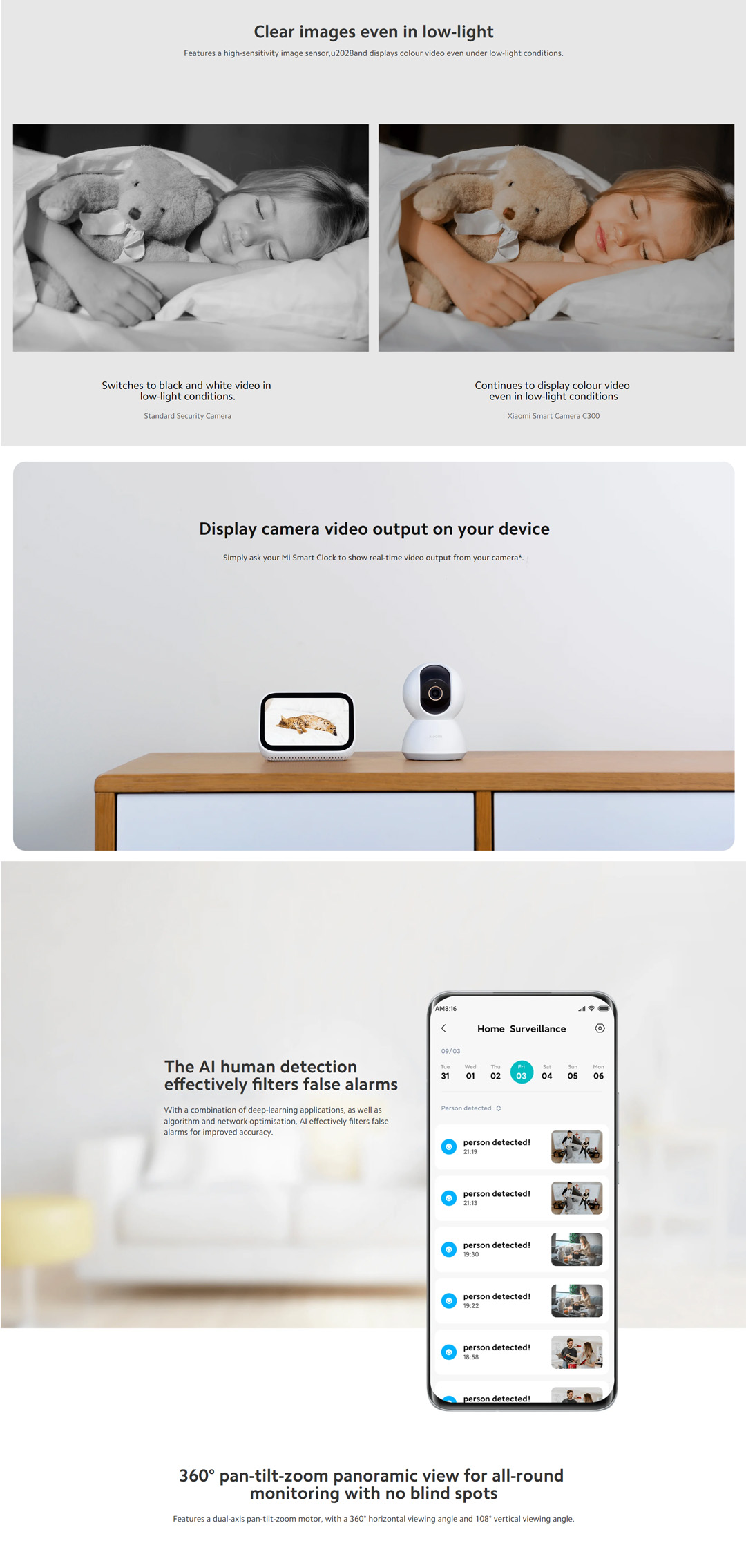 • 360° pan-tilt-zoom panoramic view for all-round monitoring