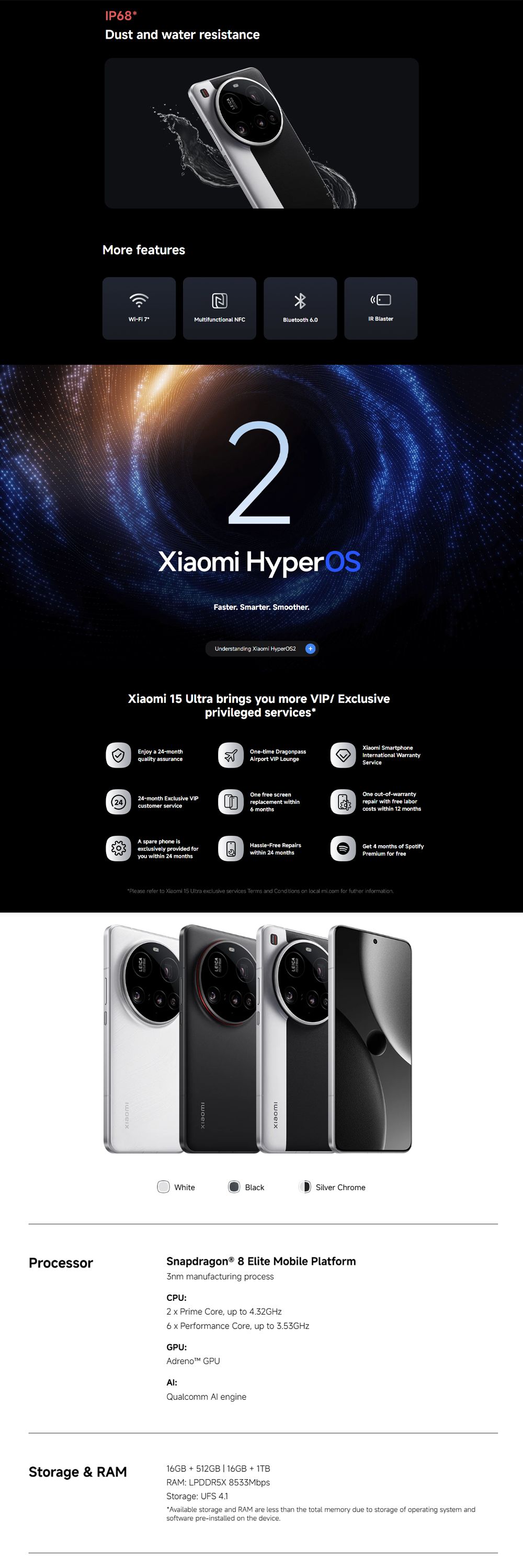 Xiaomi 15 Ultra 16GB+512GB/ 16GB+1TB | Qualcomm SM8750-AB Snapdragon 8 Elite (3 nm) | 6.73 inches, LTPO AMOLED | 200MP Camera | Li-Po 5410 mAh, 90W HyperCharge