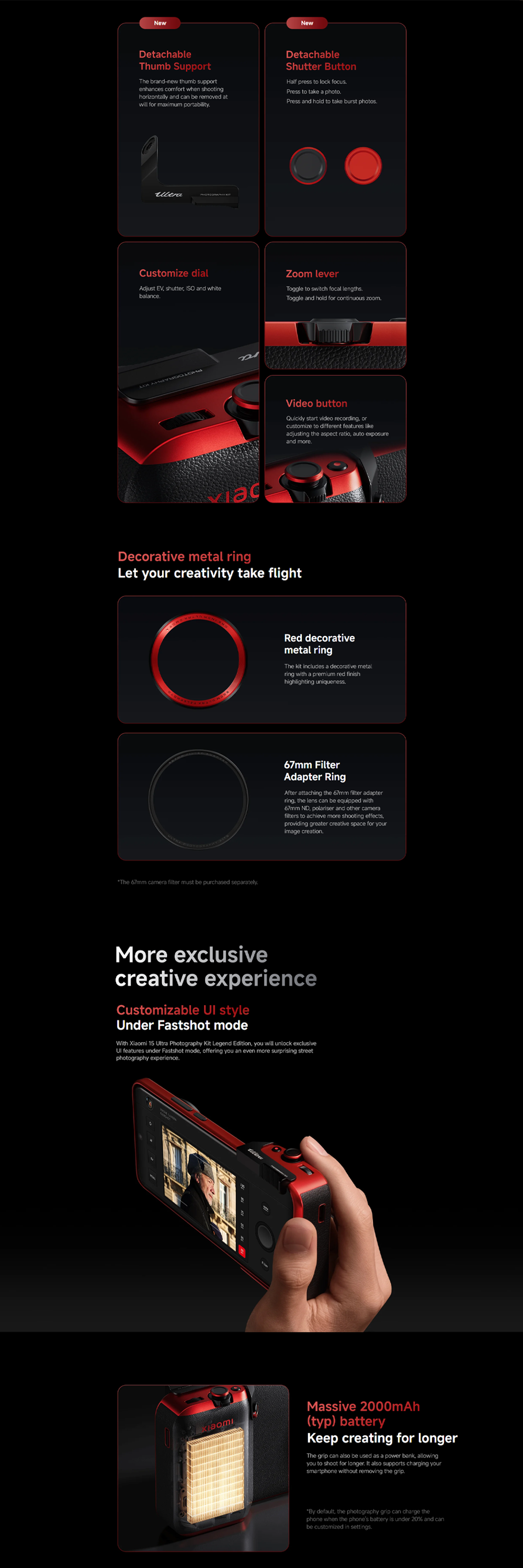 Xiaomi 15 Ultra Photography Kit Legend Edition 25017PSB6S | Video button | 67mm Filter Adapter Ring | Massive 2000mAh (typ) battery