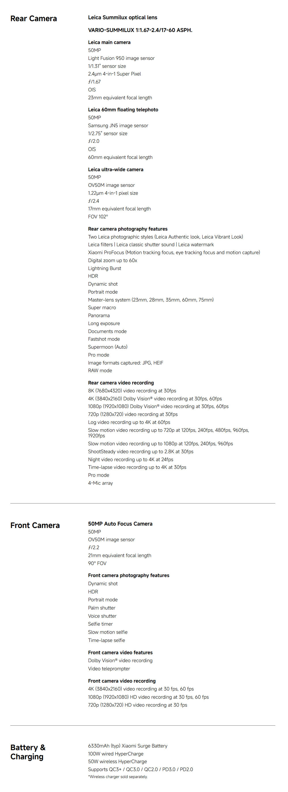 ▪ Battery Capacity(mAh): Li-Po 6330mAh, Supports 100W fast charging