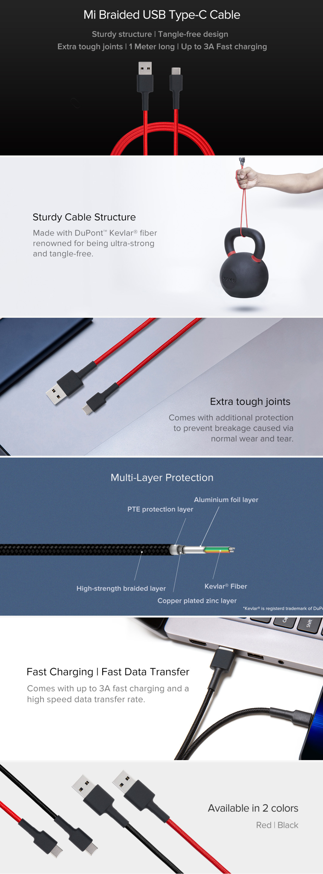 Xiaomi 1m Braided USB Type-C Cable | High-Strength Fiber Braid | Robust and Durable | Fine-Tuned Inside and Out | Cable with 1 Year Warranty