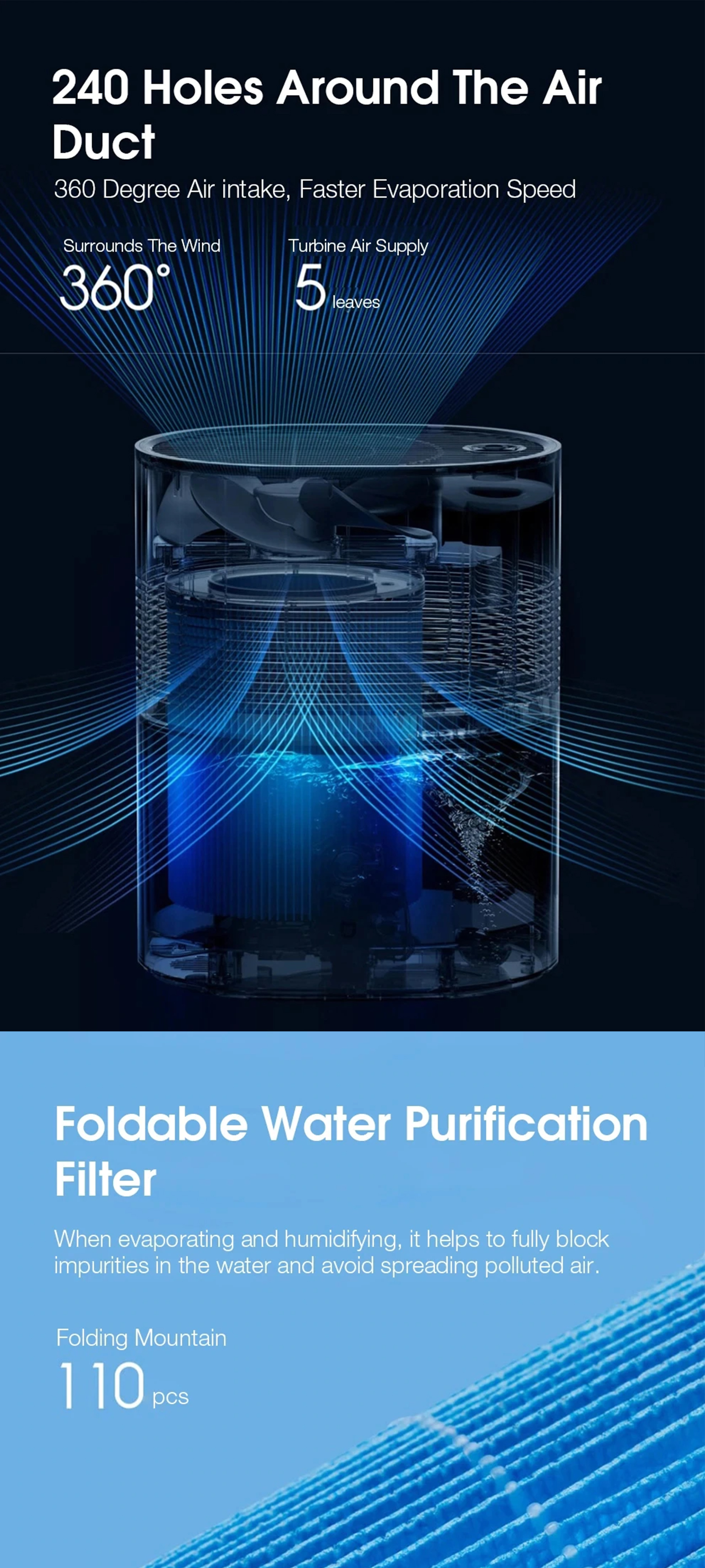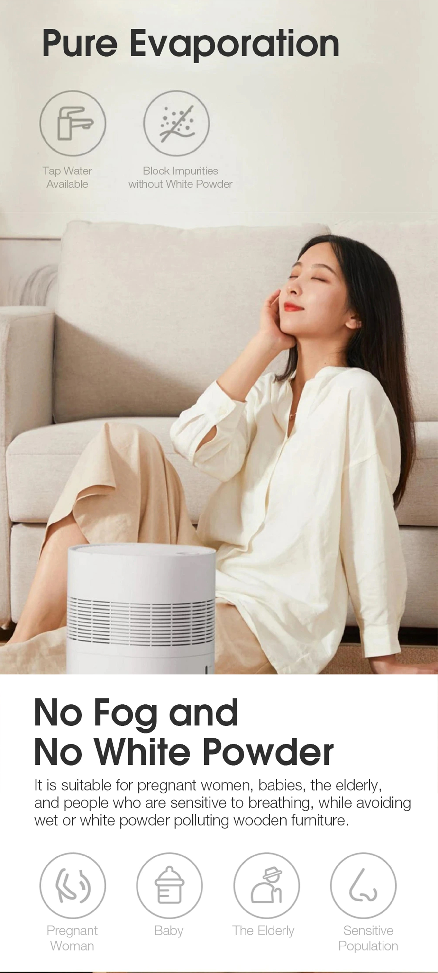 ● Pure Evaporative Humidification: tap Water available,block impurities without white powder.