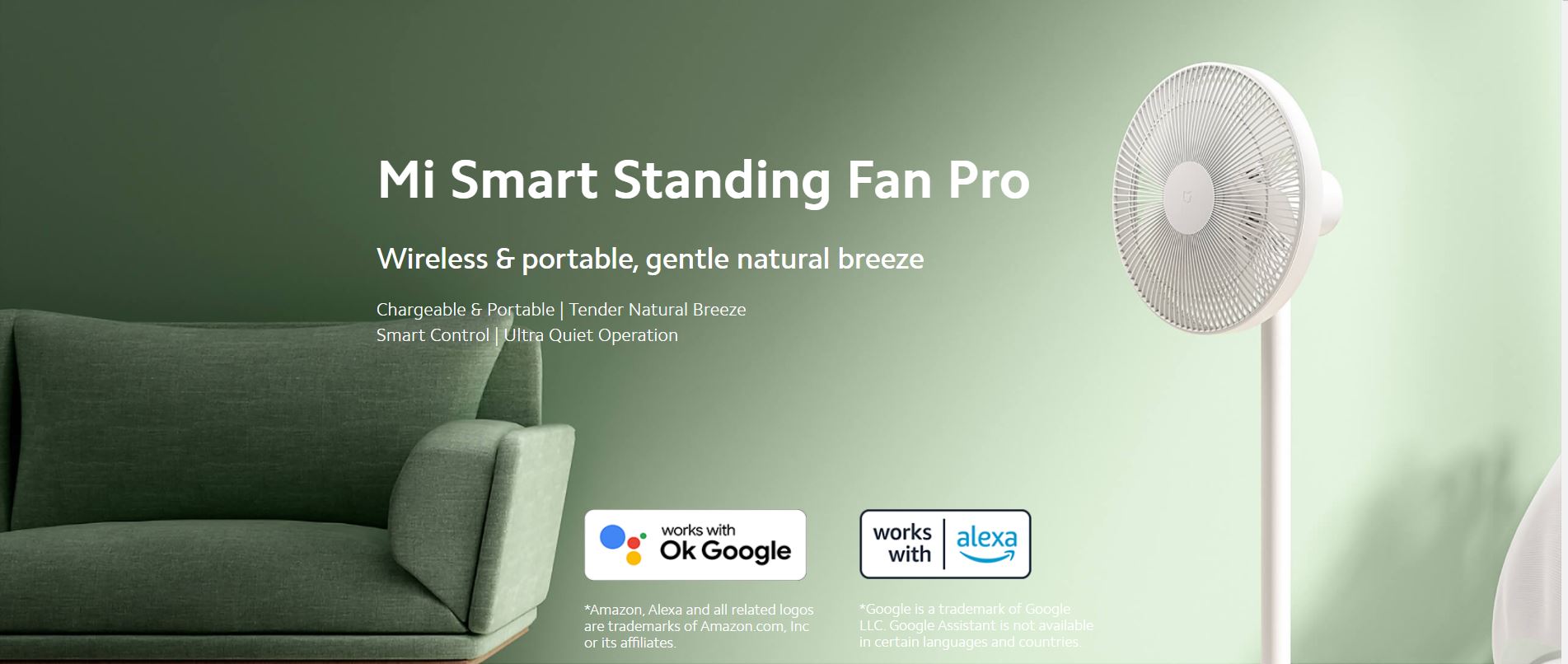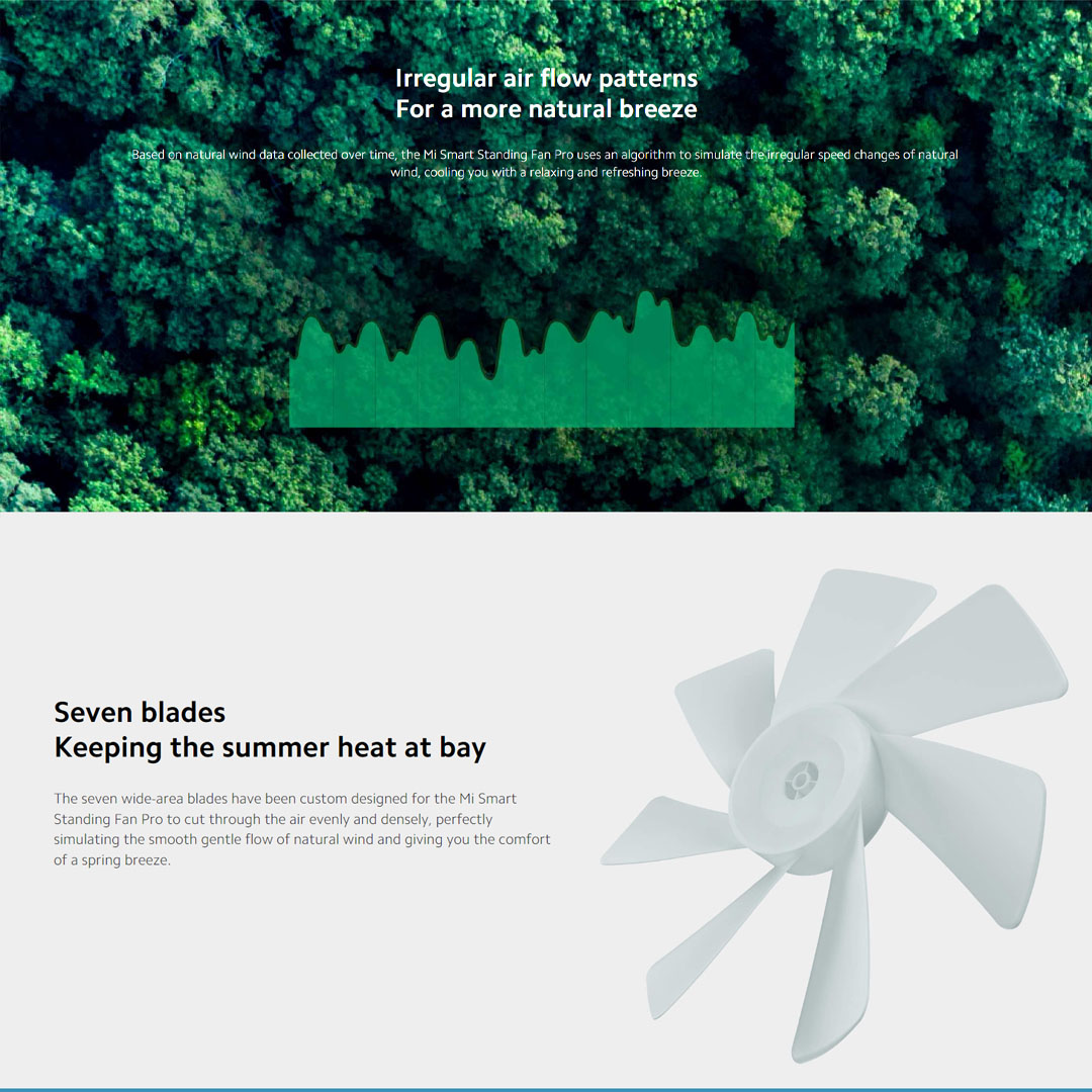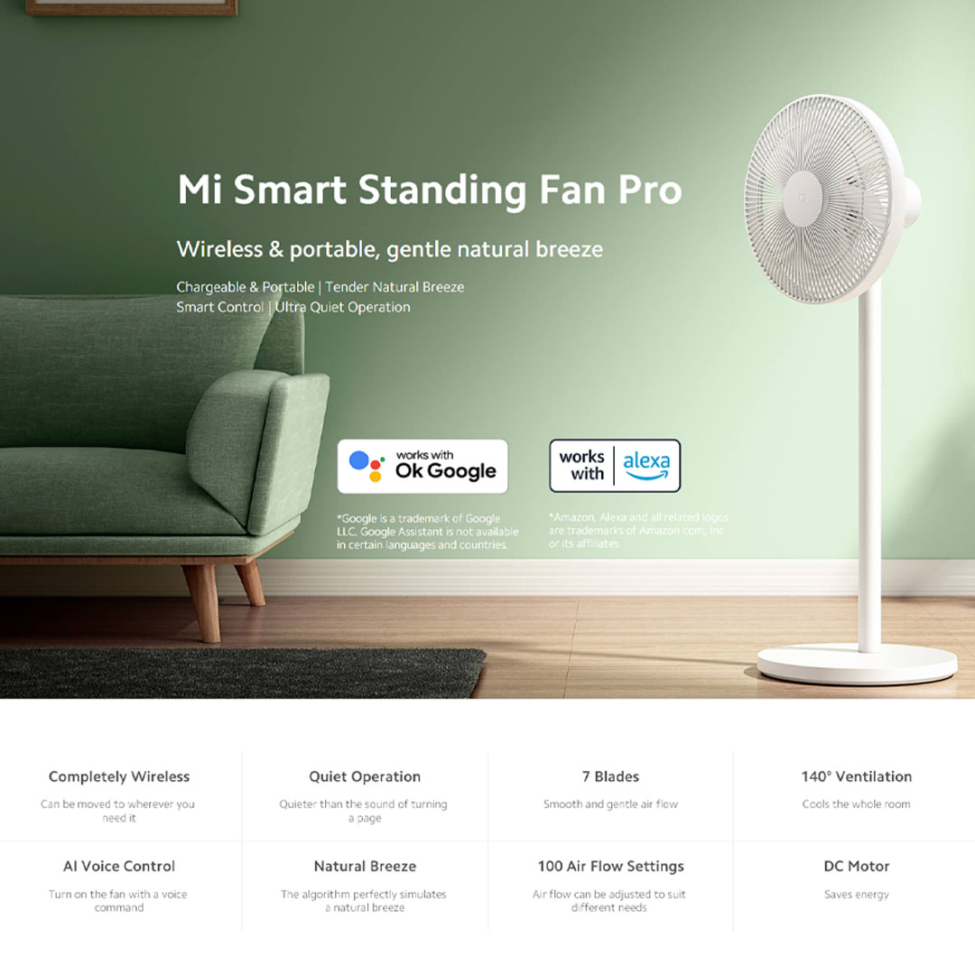 Xiaomi 23.1m3/min Mi Smart Standing Fan Pro ZLBPSP01XY | 7 Blades | Chargeable & Portable | Tender Natural Breeze Smart Control | Ultra Quiet Operation | Standing Fan with 1 Year Warranty