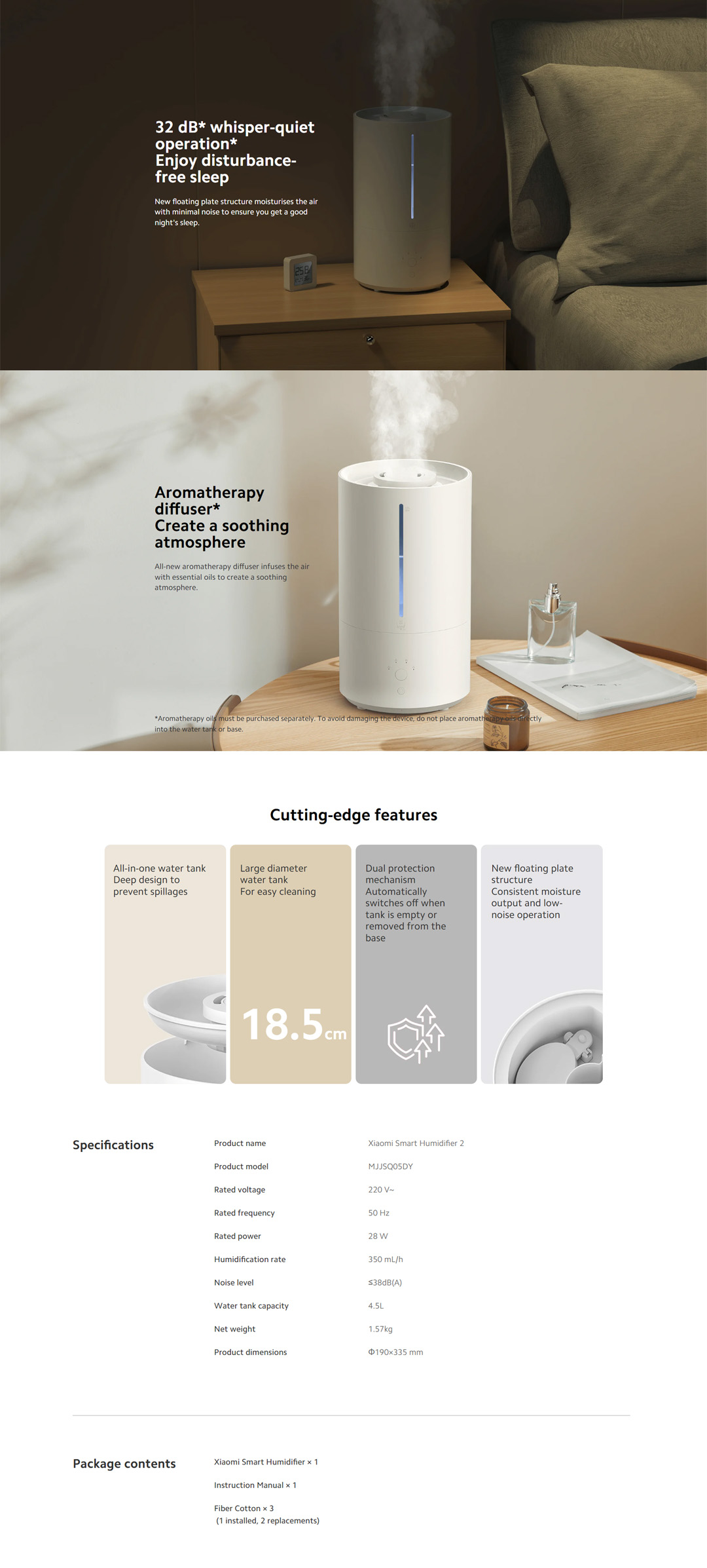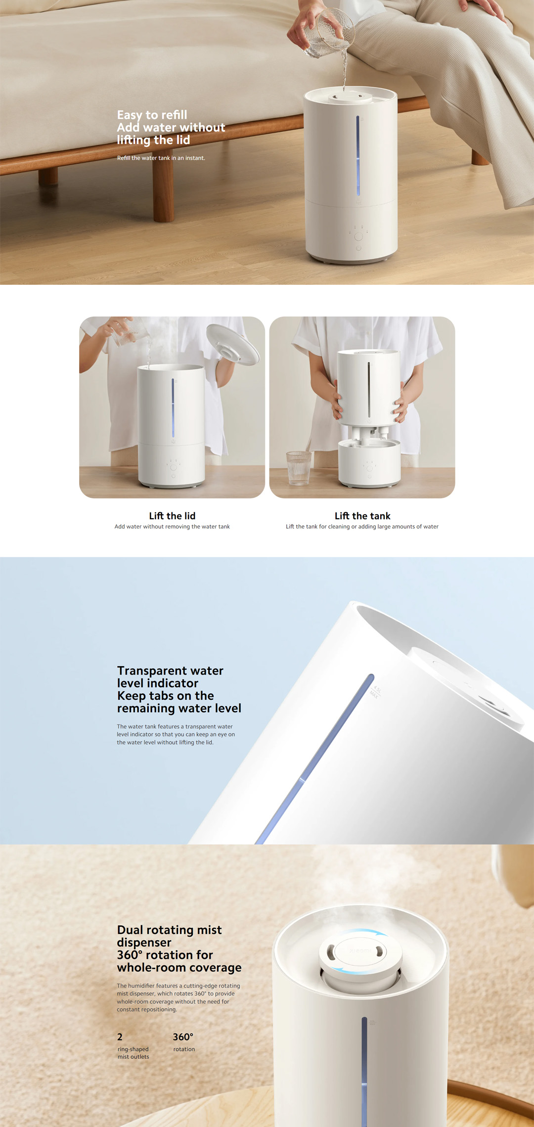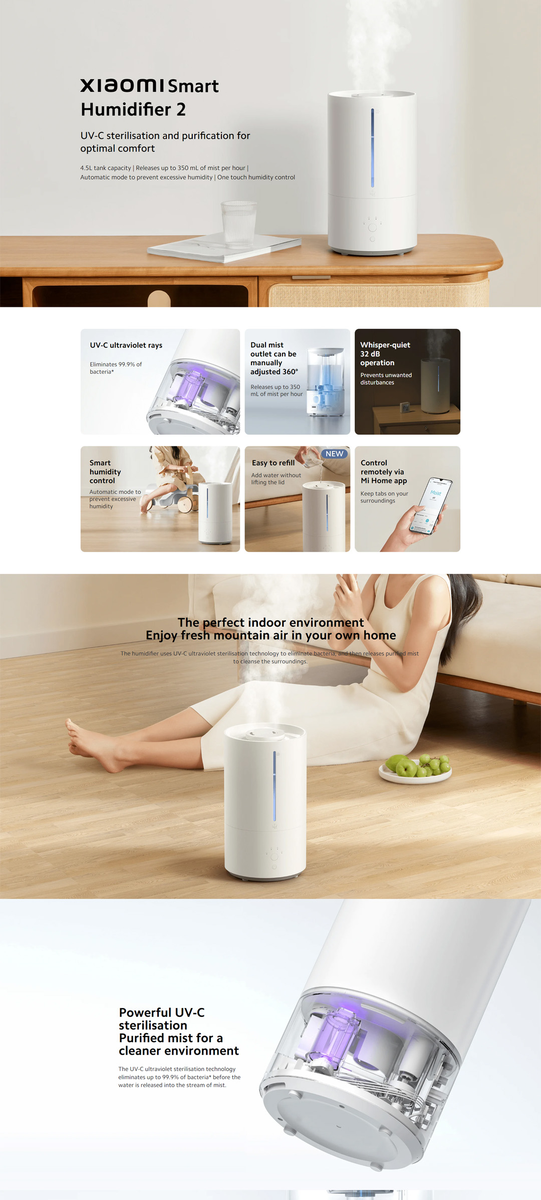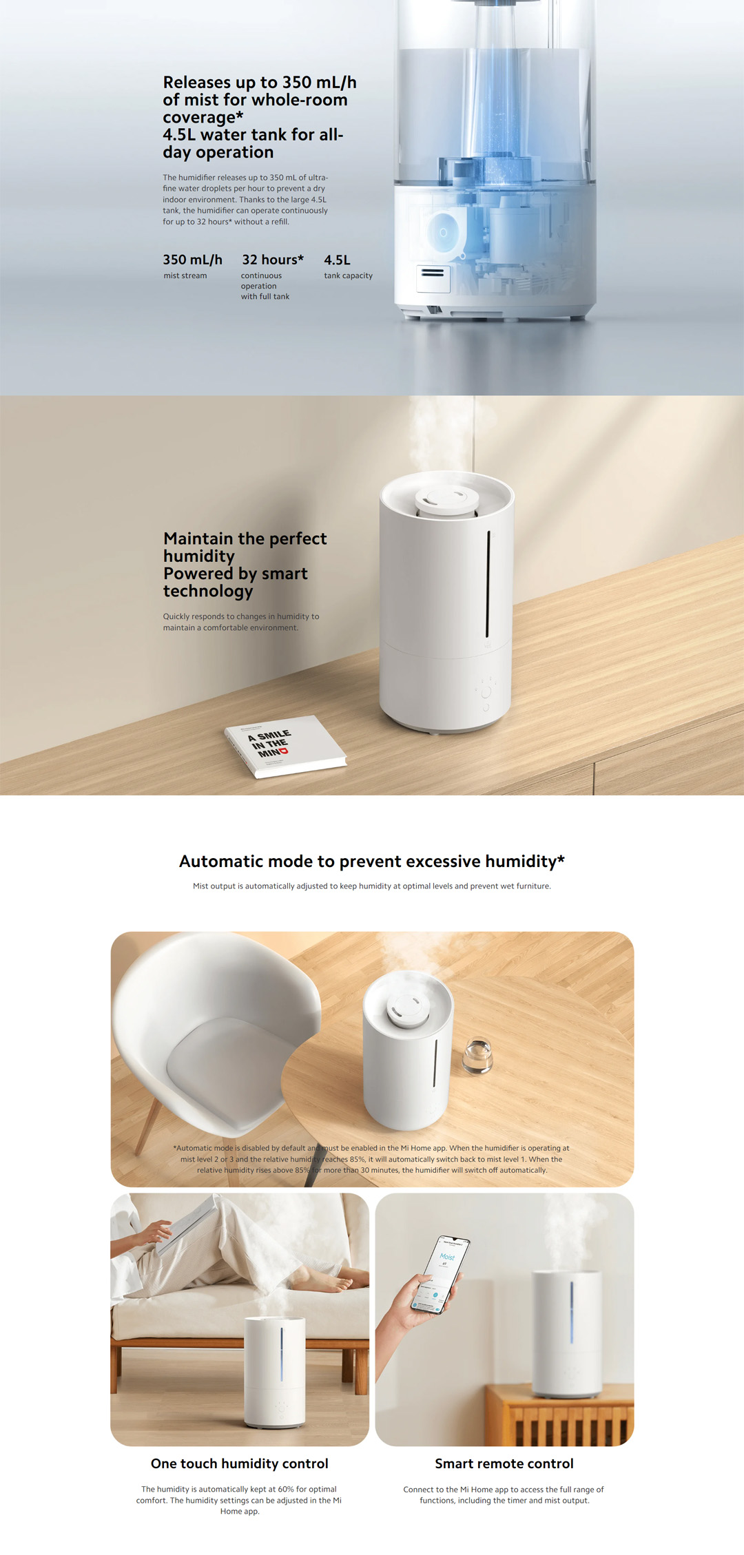 Xiaomi 4.5L Smart Humidifier 2 MJJSQ05DY | Releases Up to 350ml of Mist Per Hour | One Touch Humidity Control | Humidifier with 1 Year Warranty