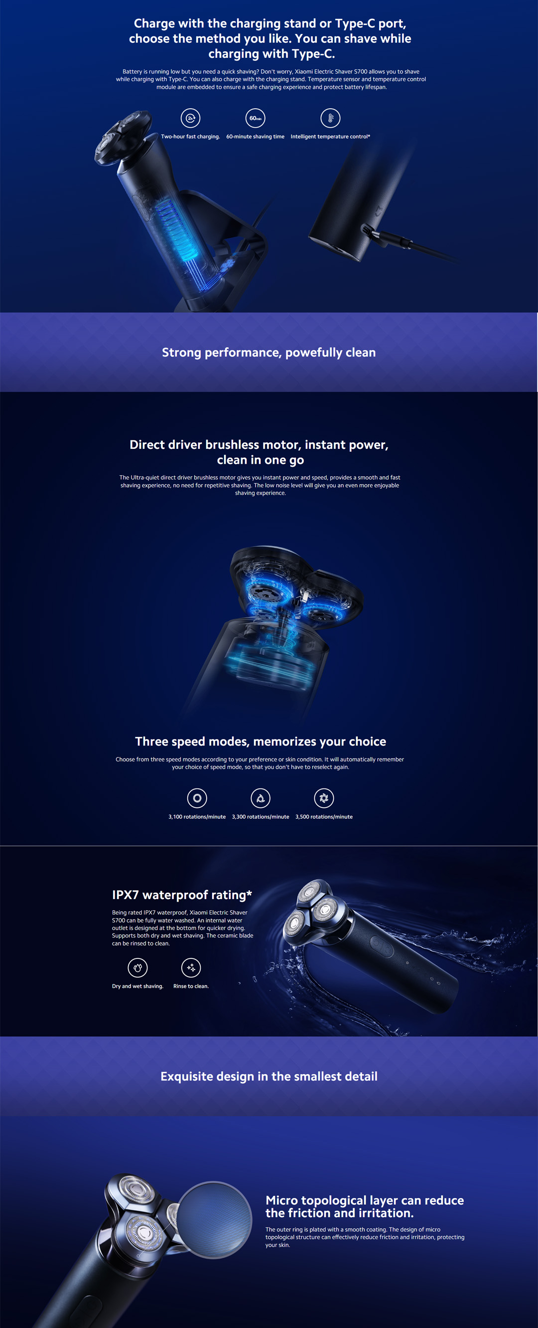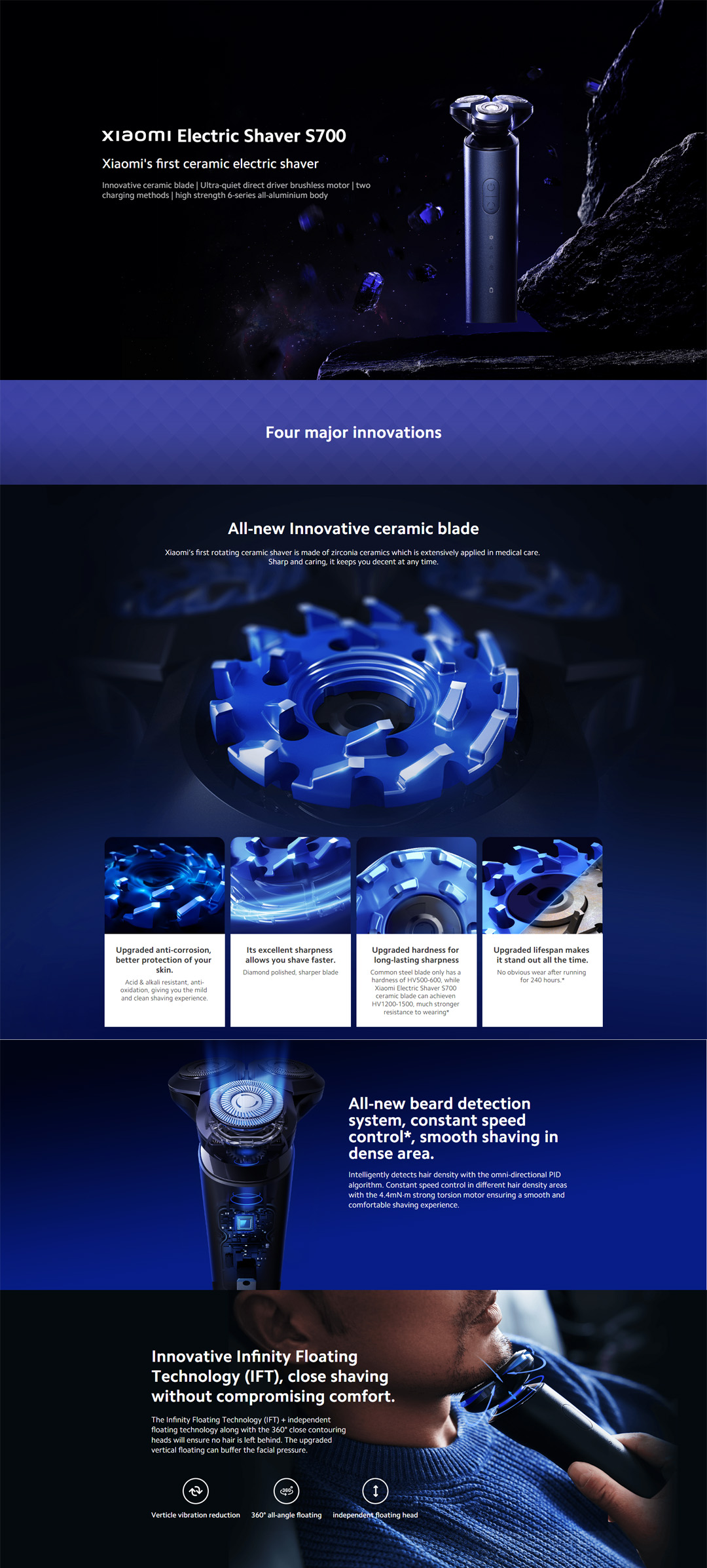 Xiaomi Electric Shaver S700 | IPX7 Waterproof Rating | Innovative Ceramic Blade | Three Speed Modes | Electric Shaver with 1 Year Warranty