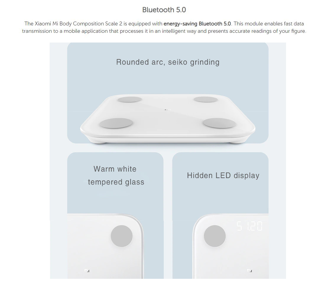 Xiaomi Mi Body Composition Scale 2 XMTZC05HM (Chinese Version) | Bluetooth 5.0 | G Sensor with An Accuracy of 50g | Analysis of 13 Data Types | Dual Mode for People and Objects | Scale with 3 Month Warranty