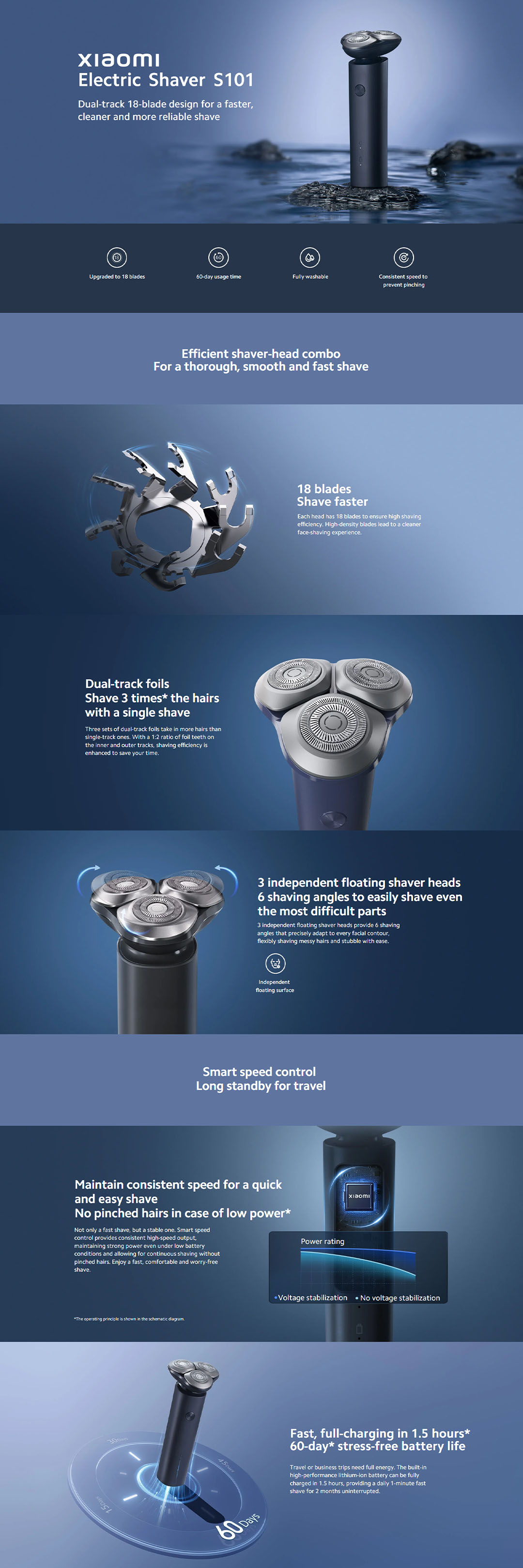 Xiaomi Mi Electric Shaver S101 | Upgraded to 18 blades | 60-day usage time | Fully washable | Electric Shaver with 1 Year Warranty