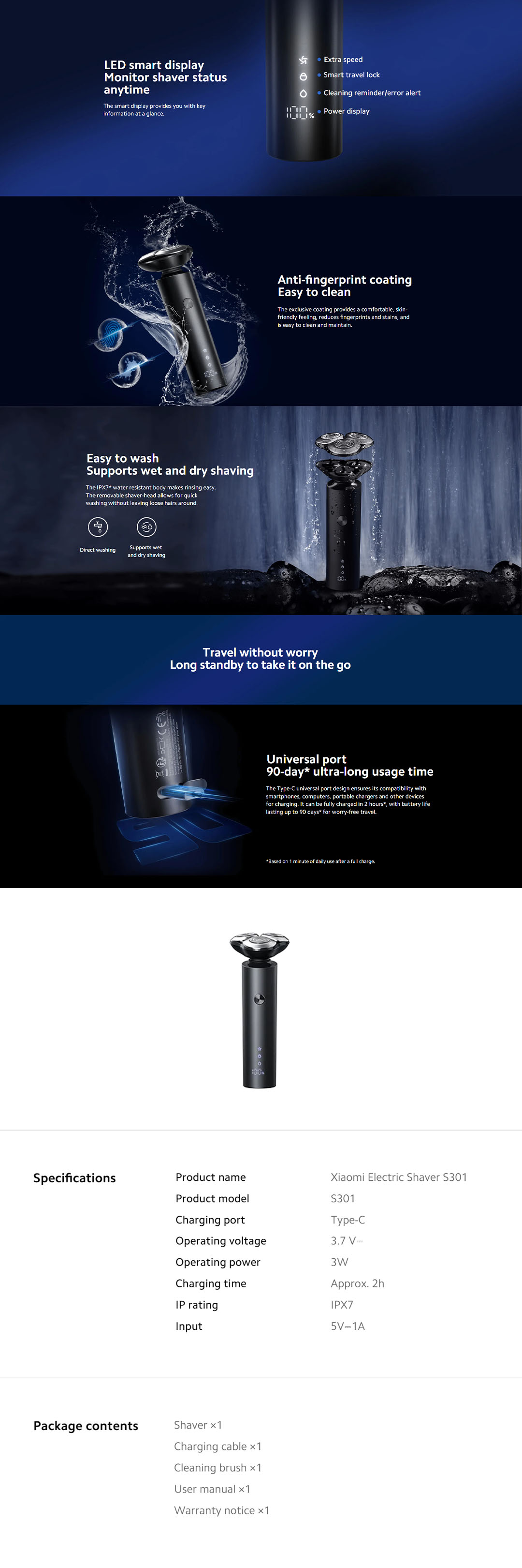 Xiaomi Mi Electric Shaver S301 | Dual-track foils | Two adjustable speed levels | LED smart display Monitor shaver status anytime | Electric Shaver with 1 Year Warranty